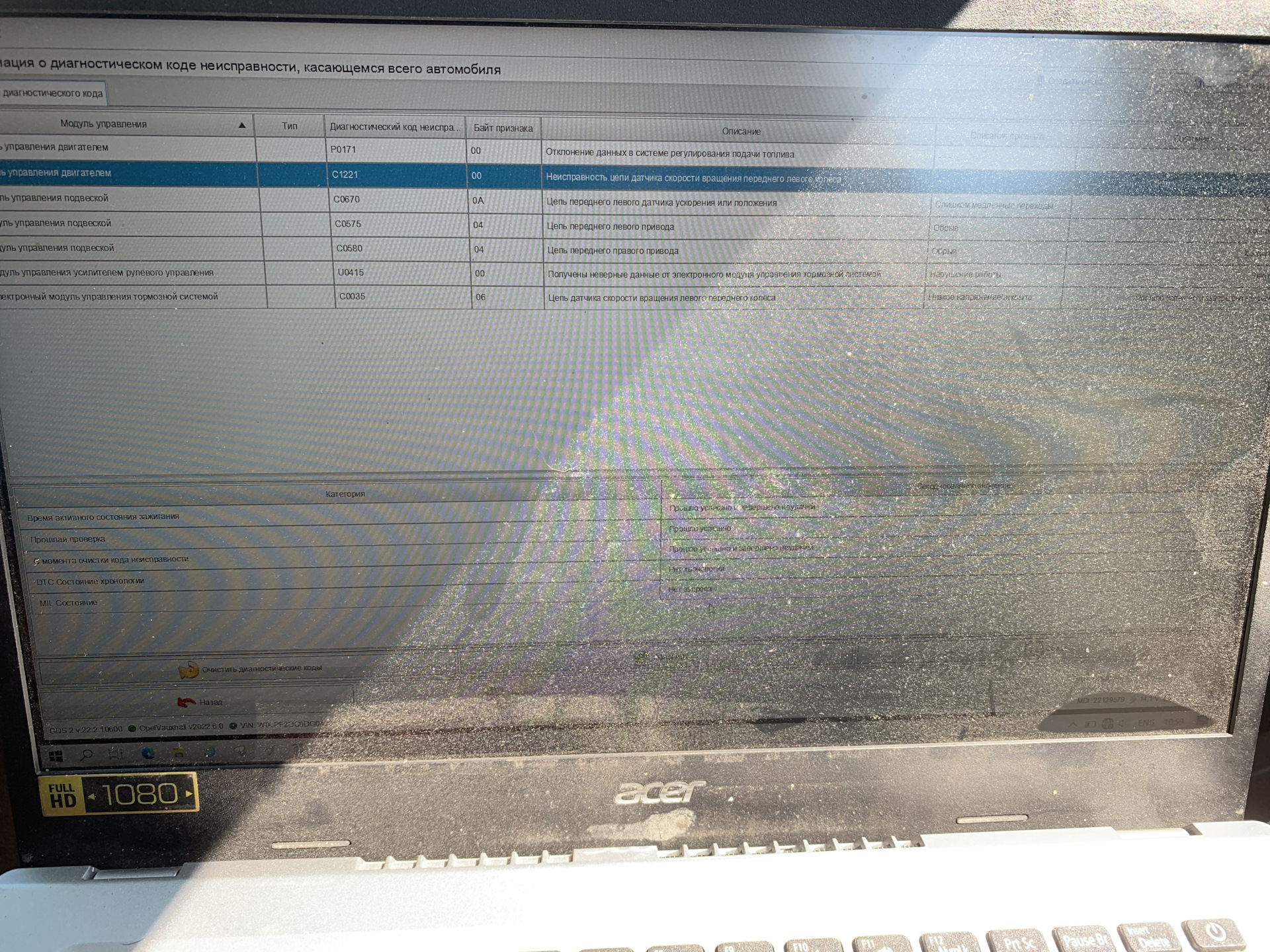 Уже считали скорость. Неадекватное значение по левому переднему. Будем смотреть .