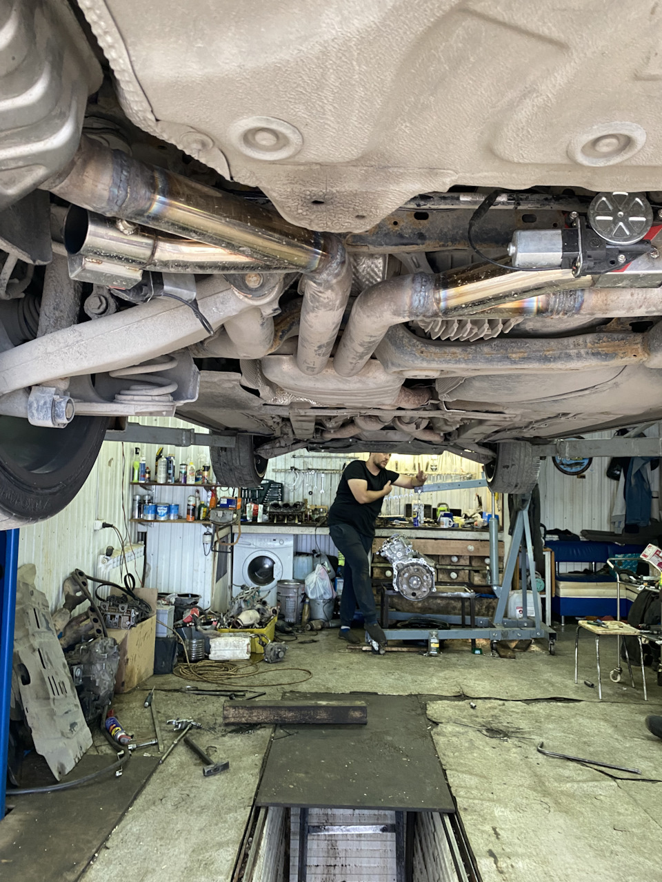 Долго думал что сделать с выхлопом, что бы был и звук приятный (3.0 tfsi в этом плане очень проблемный ) и что бы он на мозги не давил когда долго ездишь, а так же когда у вас дети, было решено заказать заслонки электрического регулирования и в варил их перед банками, звук получился шикарным, когда выключаешь из получается стандартный тихий выхлоп, очень доволен проделанной работой, так же переваривал гофры, с ними намучатся так как спустя две недели одной уже хана пришло, поэтому выбирайте хорошие что бы не делать двойную работу.