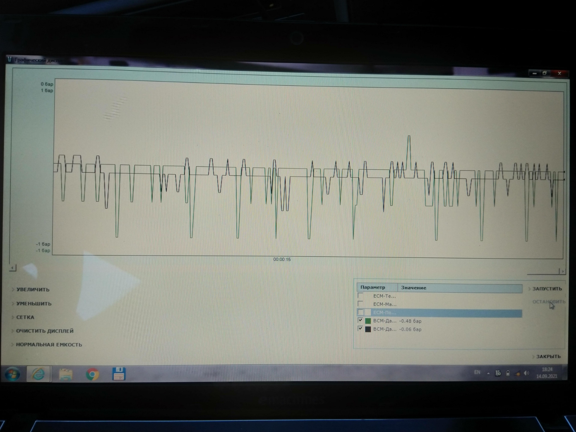 При придавливании педали тормоза картина не меняется, давление растёт, помехи остаются.