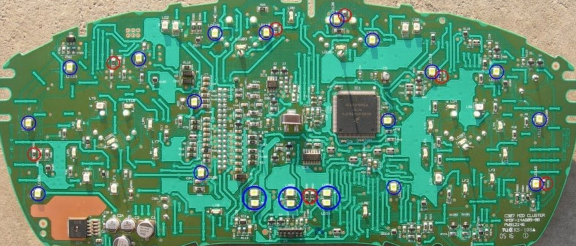 Доделал приборную панель . После замены светодиодов 3528 с зелёных на белые, яркость была очень большая . Ночью не ездил, но итак понятно, что будет слепить. Поменял резисторы, дублирую фото многих, какие менять .