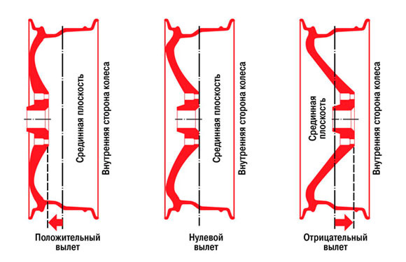 Ет бывает положительный и отрицательный, чем больше ЕТ тем больше она уходит к машине, чем меньше — тем больше уходит наружу, ещё надо смотреть ширину обода "J", как то так ))