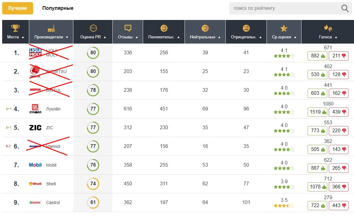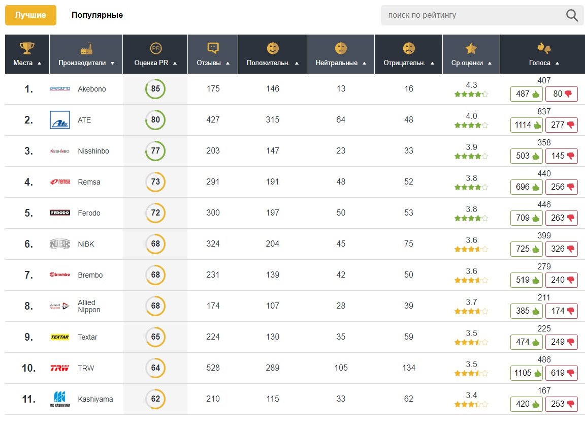я бы тут всех этих лидеров вычеркнул, одна популярная дичь-попса, нормальные масла где-то в самом конце. Так что про колодки думайте аналогично!