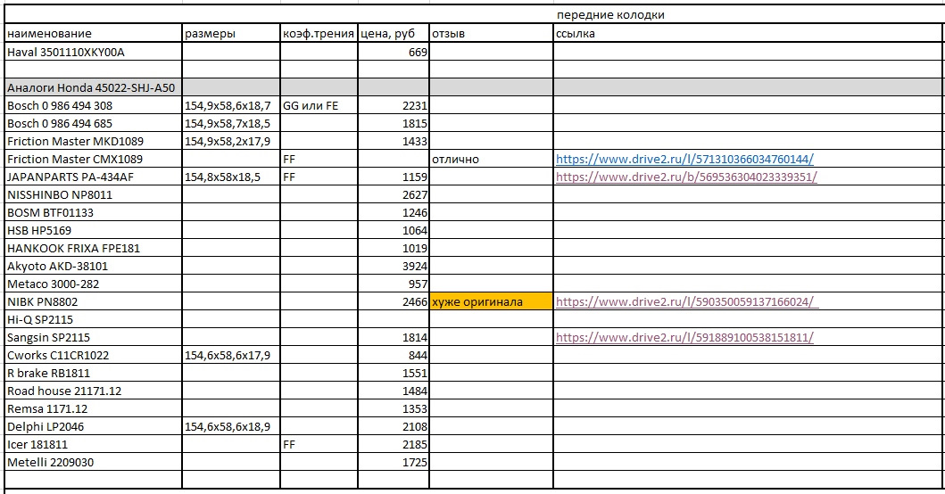 другие же пишут честно, так еще это одни из самых дорогих колодок 2466 руб (делфи, айсер, р брейк, метелии… черт да все это дешевле )