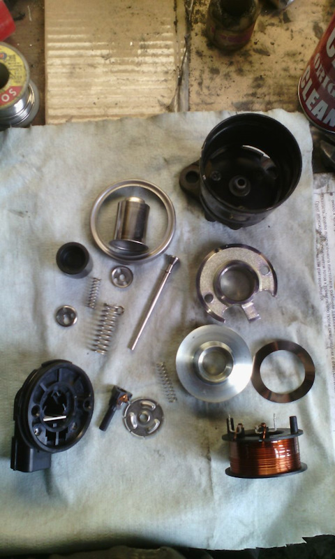 Только обязательно сделать метки на чёрном корпусе и на металле, пластиковый корпус выставлен относительно металлического! Поворачивая его, можно изменять ХХ. После промывки лучше WD40 капнуть, чем масла, на подшипники внутри, т.к масло быстрей забивается пылью, на своём опыте подметил.