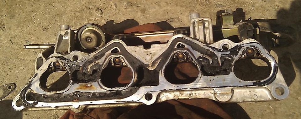3. Откручивать надо не все гайки по не опытности, начал отворачивать все, гемороя много было. Когда снял, понял, что надо было сначала отвернуть те гайки, которые держат только впуск и плиту, а потом уже остальные что держат плиту. В этом плане Хонда логично сделала, к которым трудно подлезть, значить их пока не надо отворачивать.