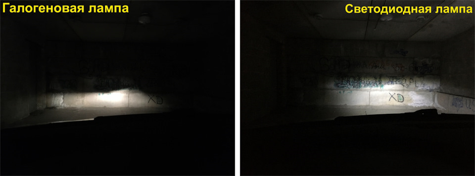 А с LED у вас никакой четкой галки нет. Там просто яркое пятно, причем оно засвечивает 2 ряда кирпичей, а значит такой свет будет слепить встречку.