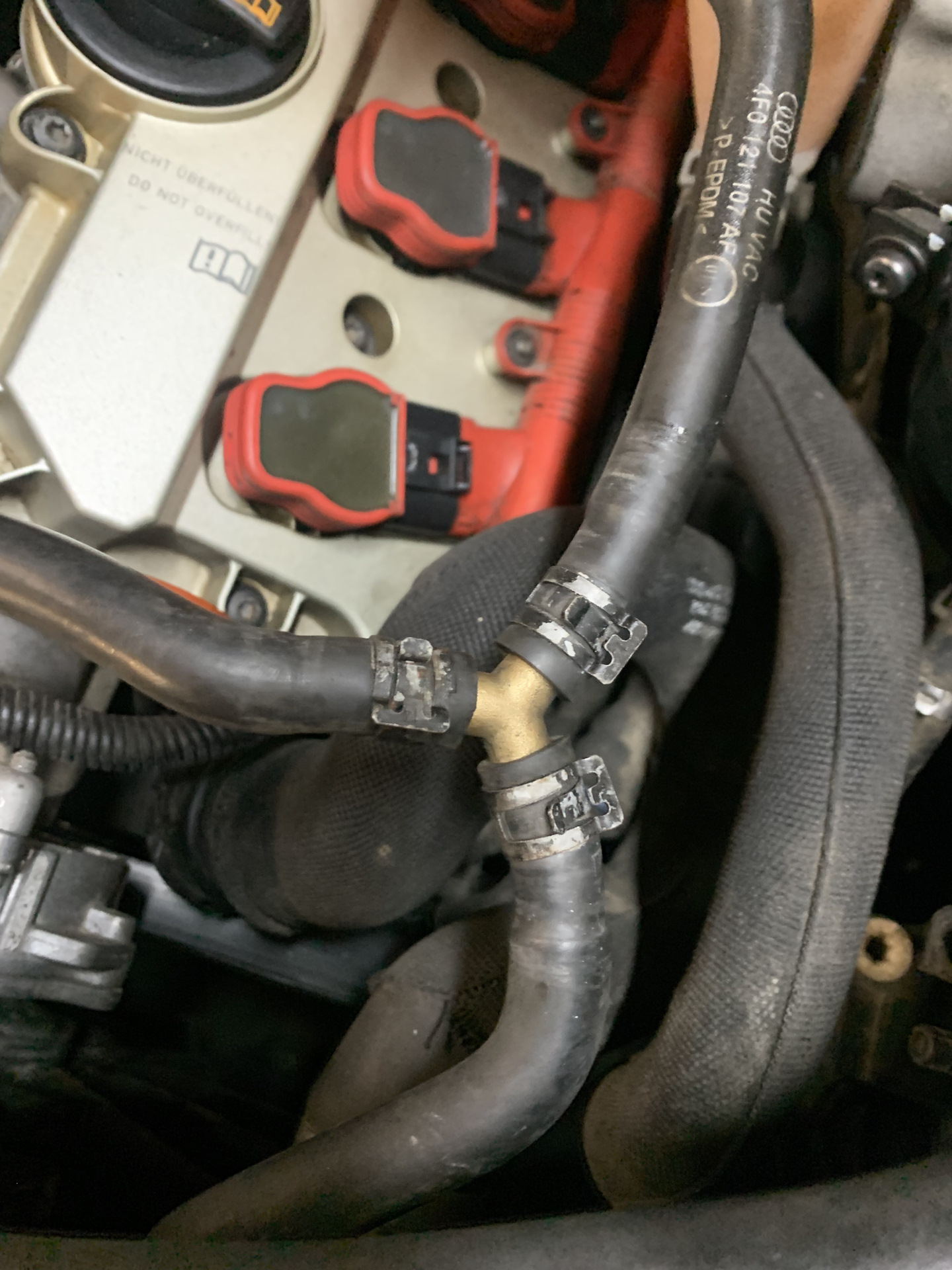 Попутно заменил как мне кажется проблемный тройник. Стойкое ощущение, что он у всех ломается. У товарища на этом же кузове 2.4 так же этот тройник обломился. Заменил на латунный изящный тройник)) Навечно в общем. Закрашу его ещё в черный для презентабельности)))