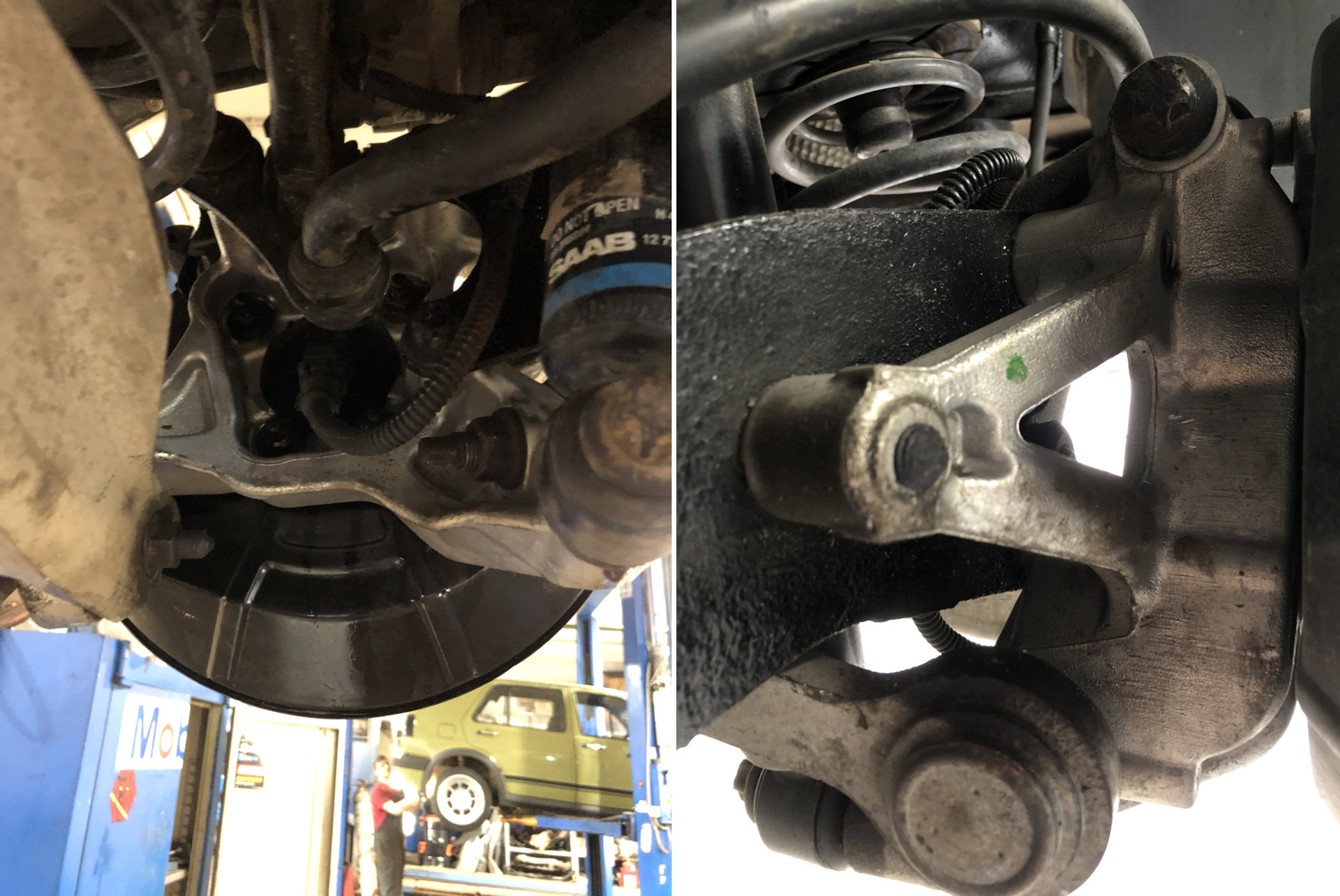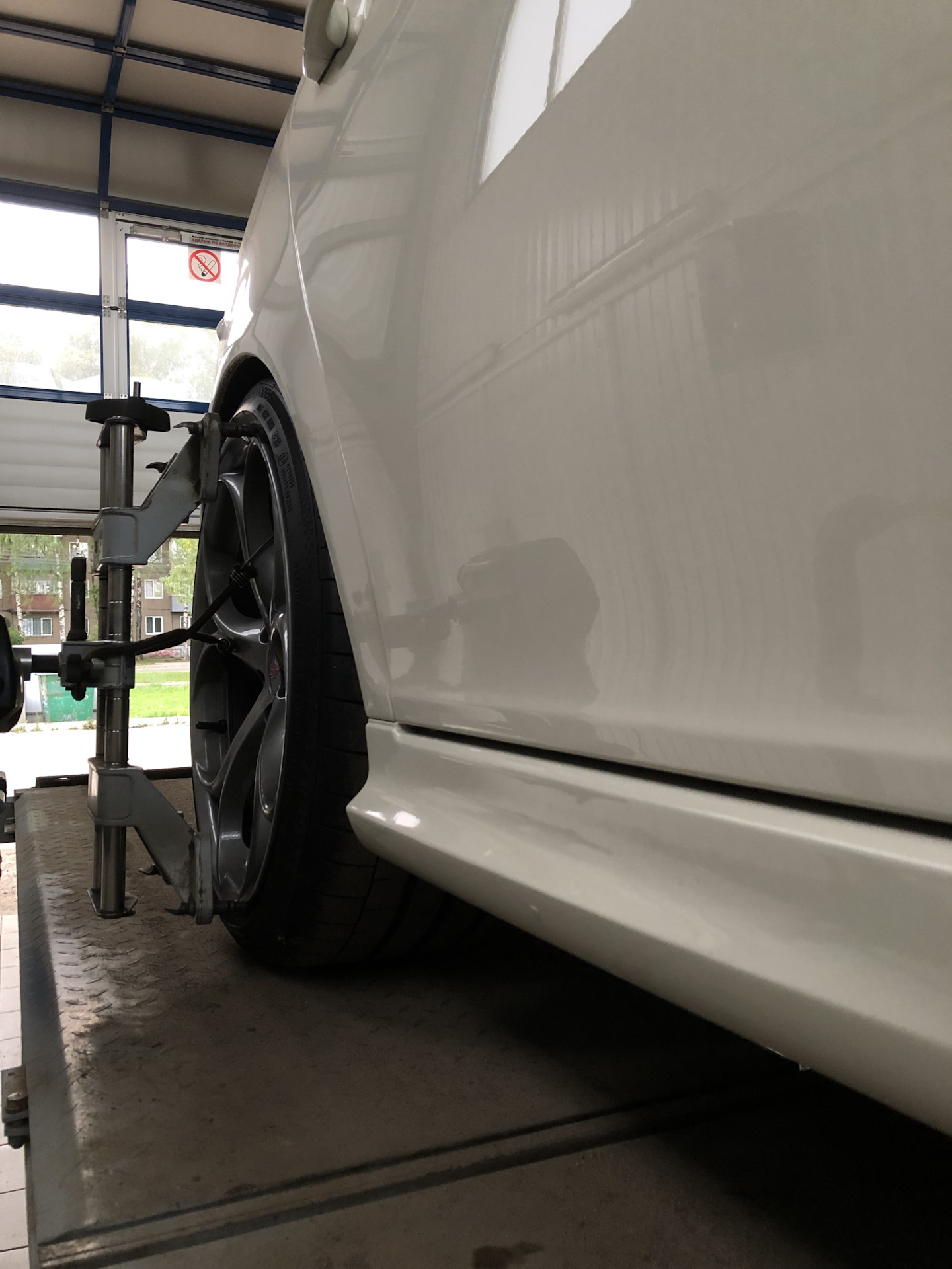 Колёса собраны, осталось прикрутить к машине. Далее история верна для SAAB 9-3 с подвеской -30 от Вектор подвески и родными стальными кулаками. Будь это -10, -40 или с алюминиевыми дорест кулаками, то ситуация уже бы была другой.