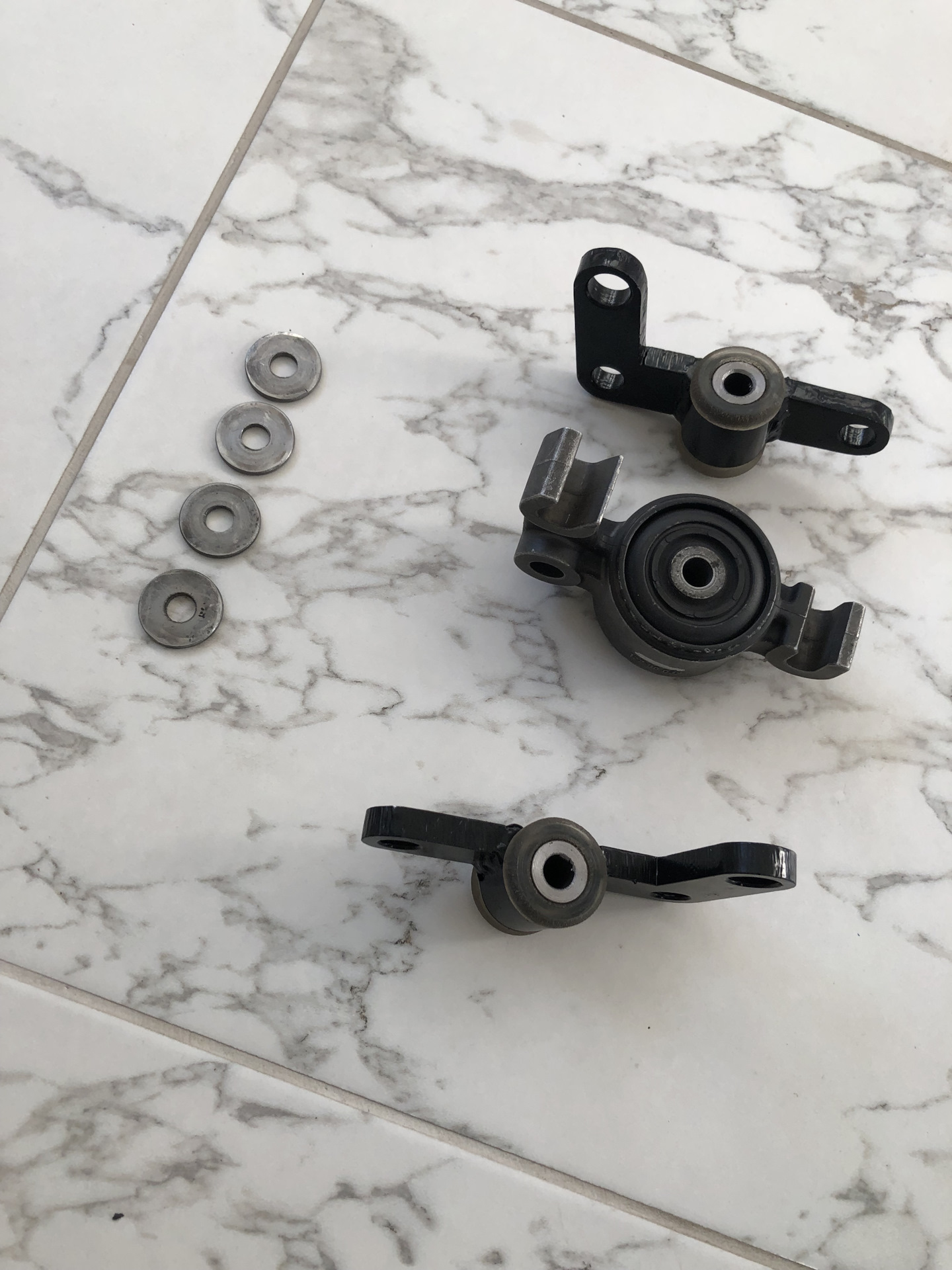 В данном случае речь про задние кулаки. В последние годы дореста и все года реста они ставились железными, крашенные в чёрный цвет. У меня они все облезли и были ржавого, рыжего цвета. Зрелище отвратительное. Я давно хотел с ними что то сделать. Оказалось в 03-04 года их ставили в алюминиевом исполнении. То есть они ещё и легче оказались, и вид отличный. Вынашивал я эту идею несколько лет. Мне все говорили — "Зачем?", плюс был риск попасть на ступицы при демонтаже. А я говорил — "Хочу!" Однажды про это мы заговорили с Димой TURBODEMON. Он меня в этой идее поддержал со стороны снижения неподрессоренных масс. Он себе и не только их уже ставил, проблем не возникло. Я решился на замену.