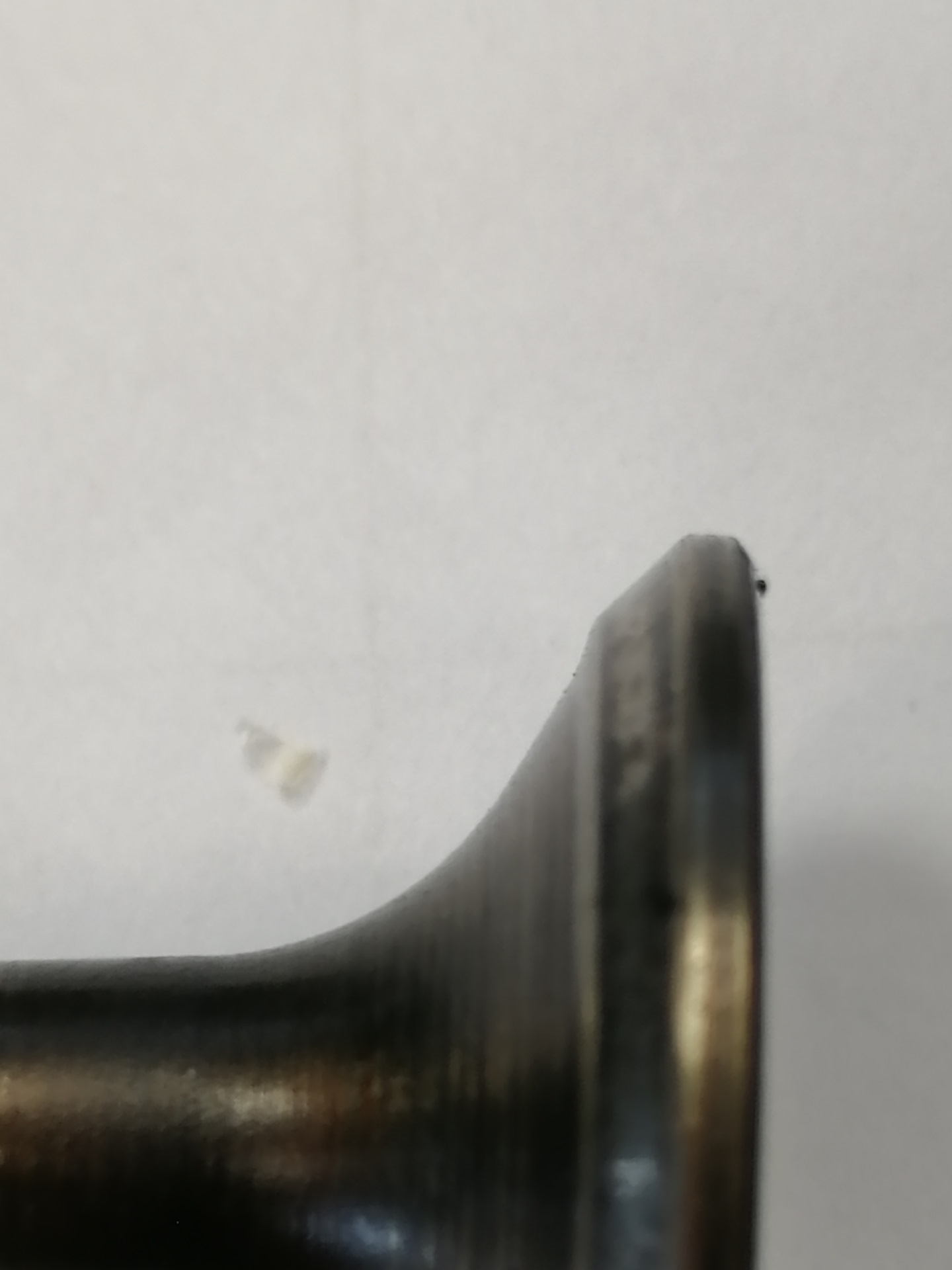 Это поврежденная фаска? Окисленная, небольшие наклепы, но ничего критичного. Все углы на месте и ширина фаски в допуске. Забегая вперёд скажу что после притирки на два прохода вручную стала как новая и ниодного кратера.