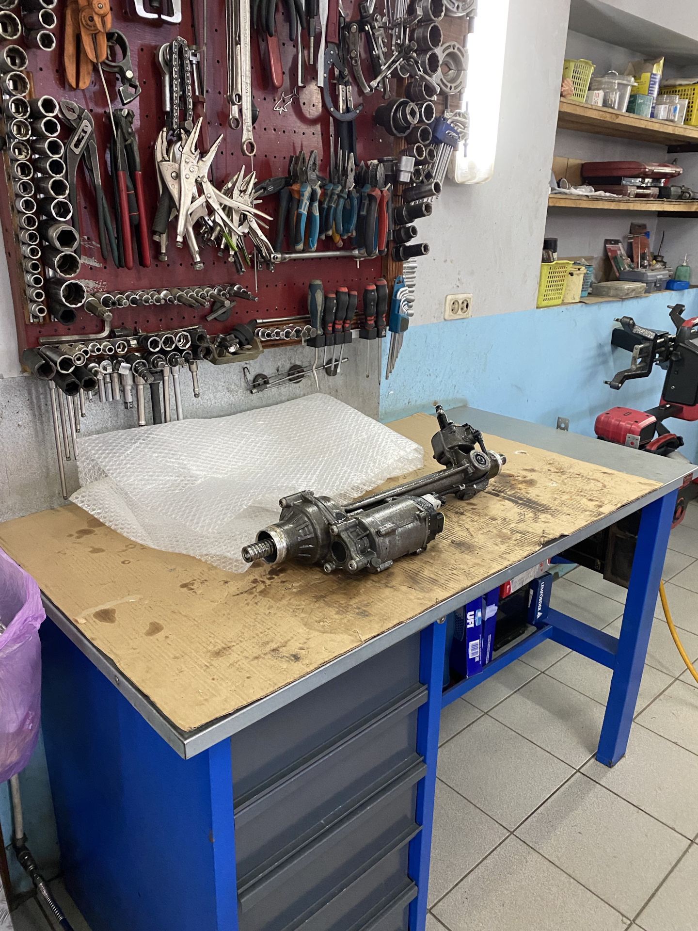 Я тоже рассматривал поездку к нему. Год назад по цене было 25-27. В итоге делал в Москве, получилось дешевле в два раза, но у меня и ситуация была проще — просто выточили втулку, заменили подшипник и осадили кардан руля (он кстати тоже стучит) .