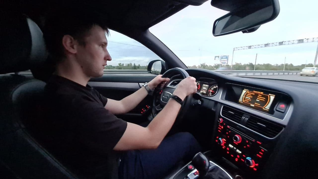 По дороге, дорога была отличного качества, ехали хорошо, без проблем привыкал к машине, к её габаритам разгонам, торможениям и спокойно ехал и изучал её.