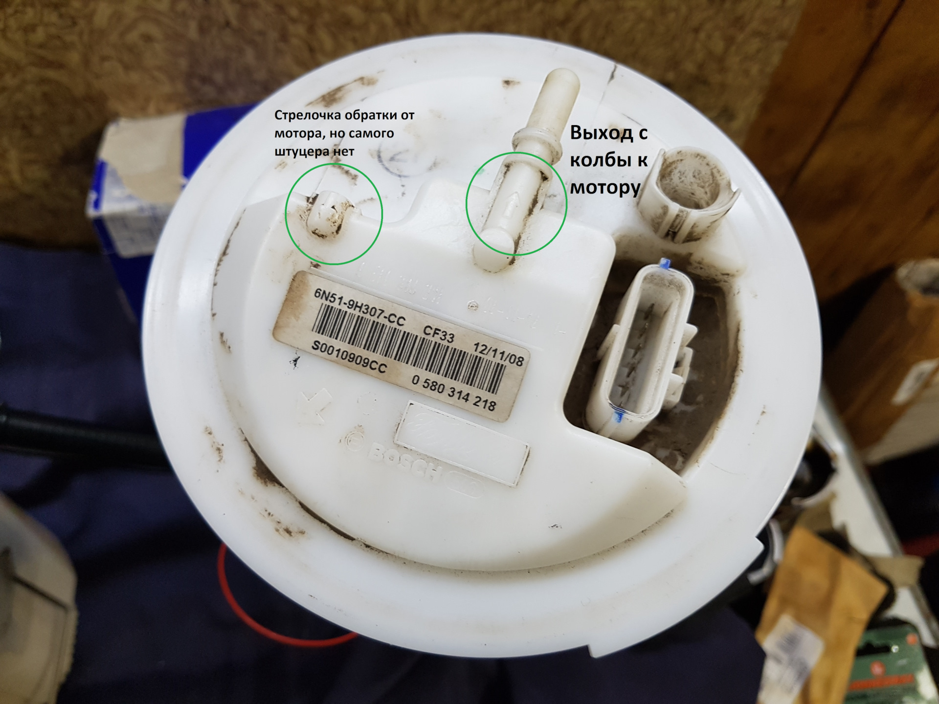 Вроде как всё получилось, дальше думаю, что делать с новой и хитрой колбой, ведь она у меня БУ, и скорее всего сильно БУ. Кручу я её значит в руках, рассматриваю, размышляю, как выломать фильтр тонкой очистки плюс поставить трубку забора бензина для штатной webasto. В какой-то момент замечаю на крышке колбы стрелочку, которая есть, но как бы её нет.