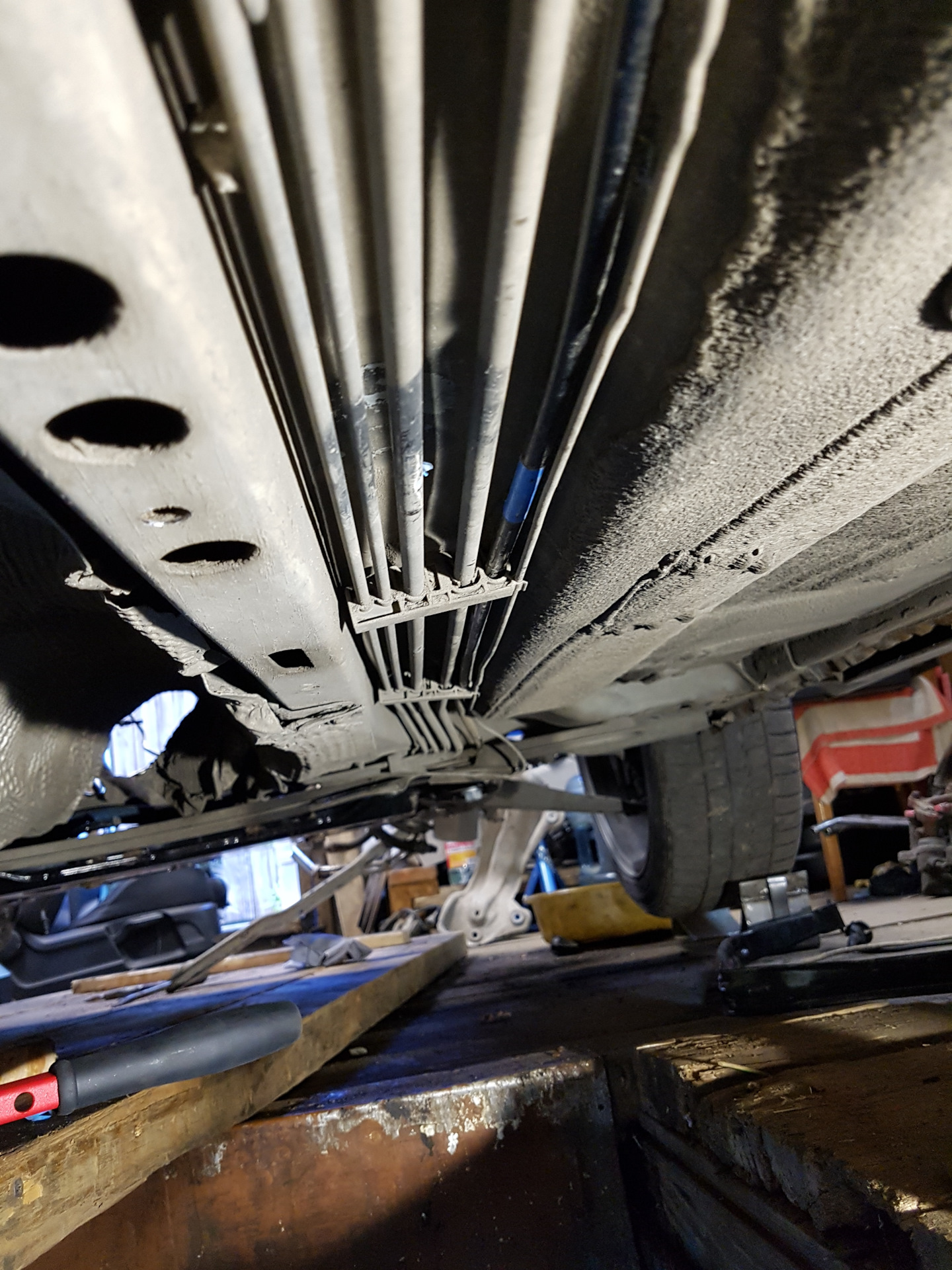 Хотелось всё сделать максимально без колхоза и надёжно. Начал с простого, взял ещё одну штатную трубку подачи топлива и уложил в единственное свободное место под машиной, к остальным трубкам. Теперь у меня полная грядка и свободных креплений нет))