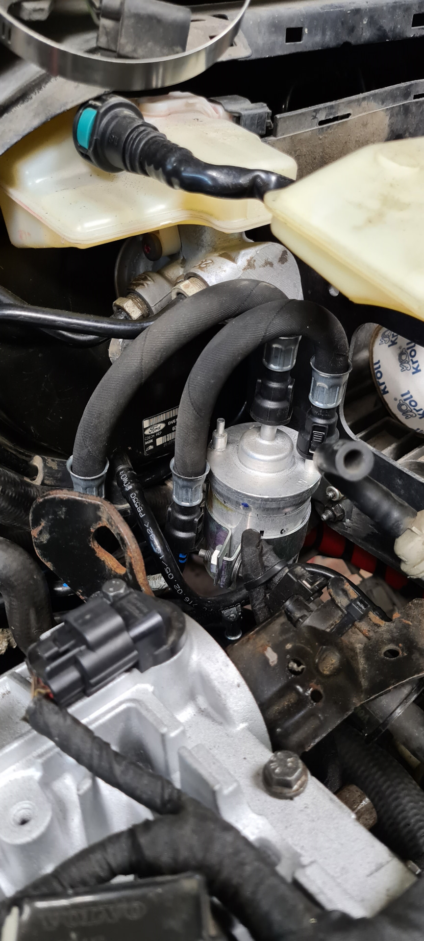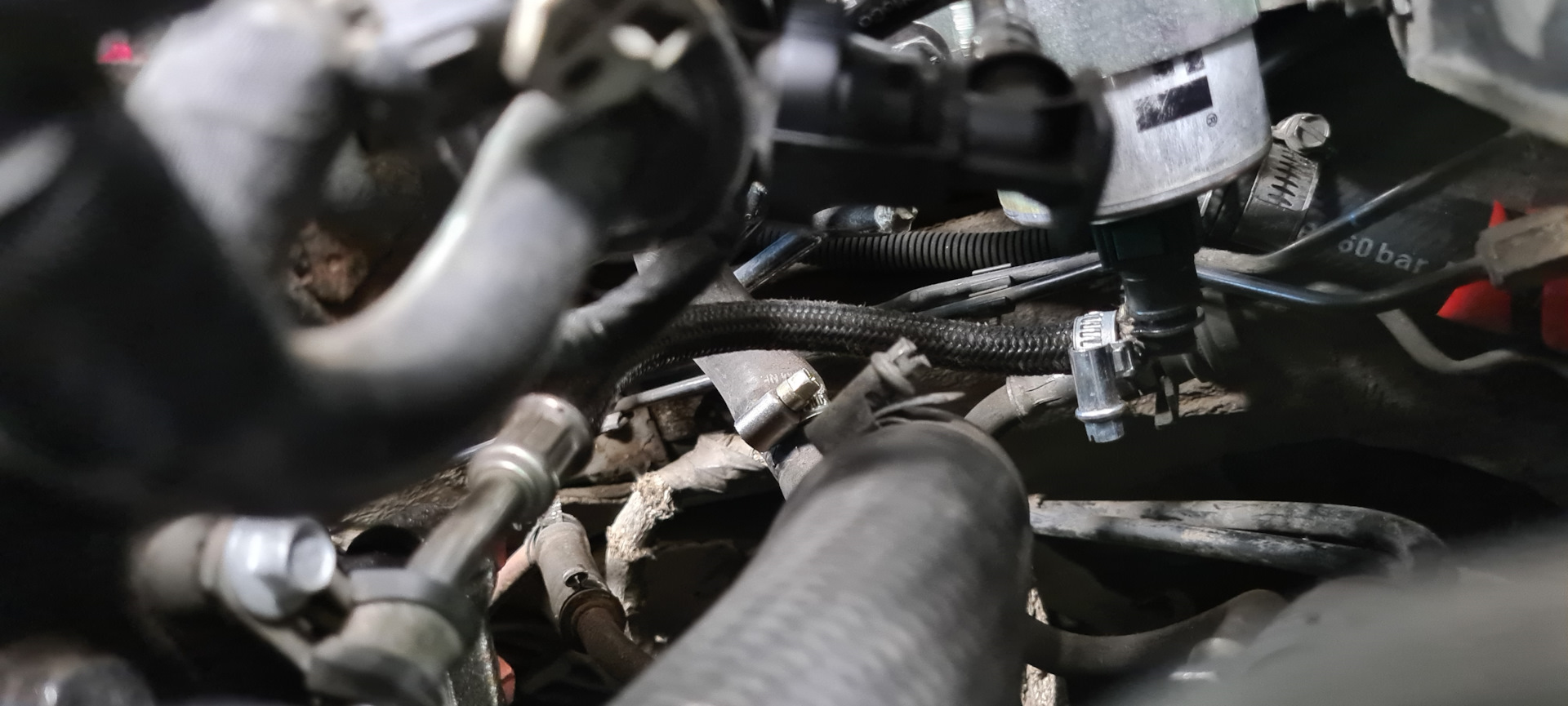 Место для установки долго искать не пришлось, крепление фильтра встало на неподвижную подкапотную часть, а именно на короб аккумулятора. Оттуда было очень удобное подключение к рампе и основным топливным магистралям