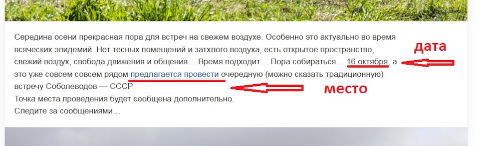 Середина осени прекрасная пора для встреч на свежем воздухе. Особенно это актуально во время всяческих эпидемий. Нет тесных помещений и затхлого воздуха, есть открытое пространство, свежий воздух, свобода движения и общения… Время подходит… Пора собираться… 16 октября, а это уже совсем совсем рядом предлагается провести очередную (можно сказать традиционную) встречу Соболеводов — СССР
