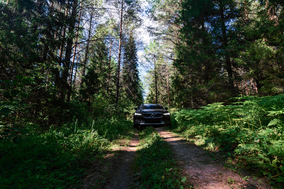Дорога через поле завела в подлесок, подлесок сменился лесом, а дорога постепенно становилась всё уже. Ветки чиркали по бортам всё чаще. В общем я прорвался в лес километра на полтора-два. Впереди оказалась глубокая лужа в колее. По идее машина должна была справиться, но я не стал рисковать и развернулся. Судя по спутниковым снимкам мне оставалось ещё полтора километра по лесу.