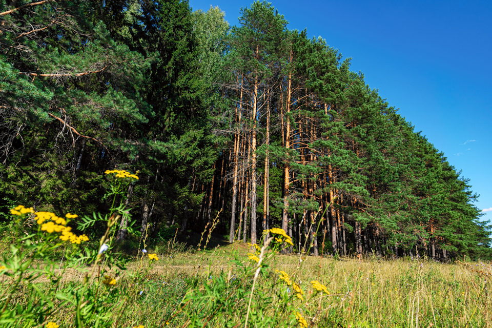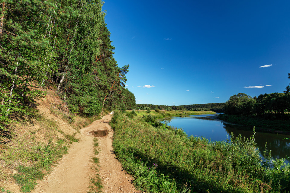Тропа вьётся между сосновым лесом и рекой