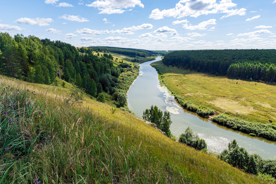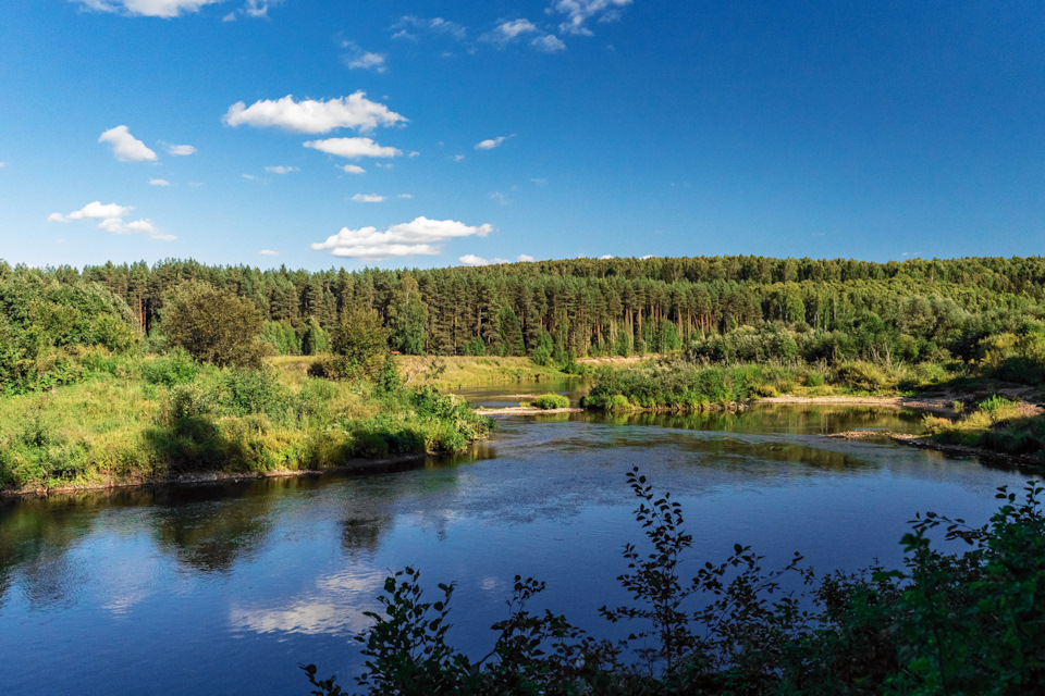 В один из дней решили прокатиться в Советский район посмотреть на скалы на реке Немде. Это место последнее время модно называть Вятской Швейцарией. Для равнинной Кировской области место уникальное: скальный массив, водопад и крутой утёс посреди полей и сосновых лесов.