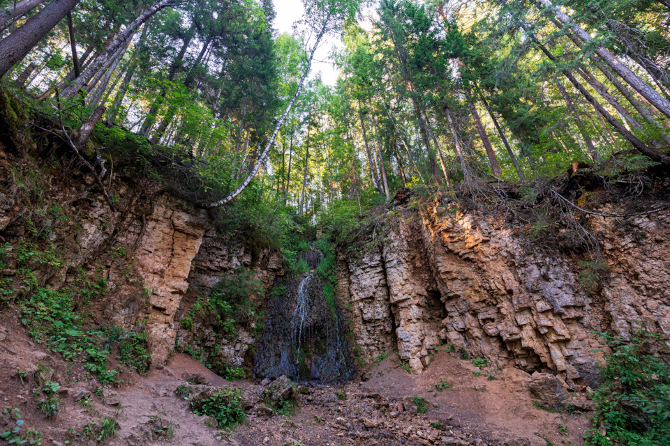 Дальше к водопаду нужно пройти пешком. В начале тропы есть хорошее место для туристической стоянки.