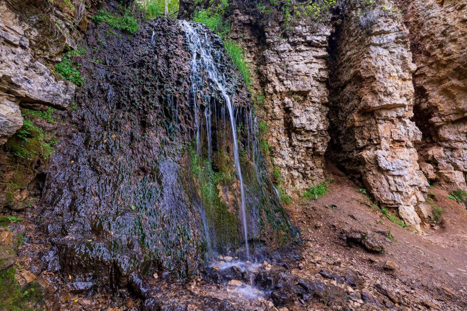 К водопаду, в теснину и на утёс удобно подниматься в спортивной обуви. Забираться в сланцах может быть небезопасно.