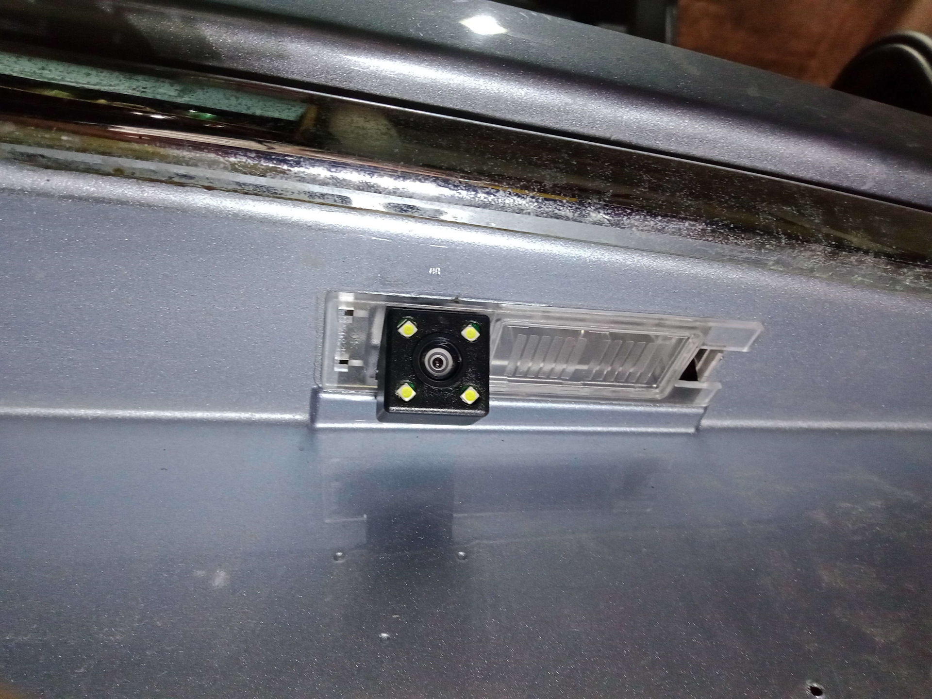 Перед разборкой машины сначала снял родной плафон и примерил купленный. Как там и был ))) Рамку с госномером пришлось временно снять – камера упиралась в нее при установке.