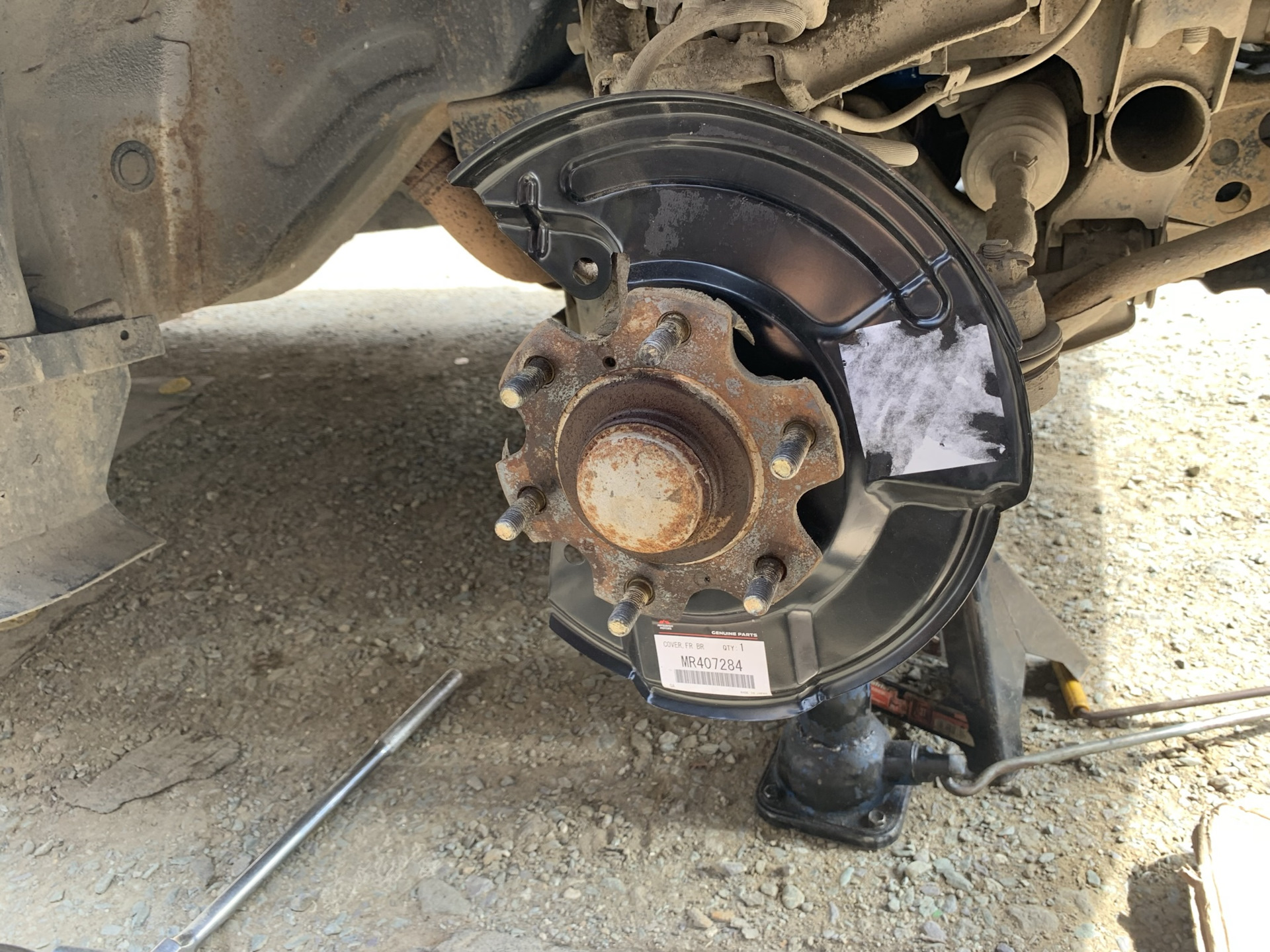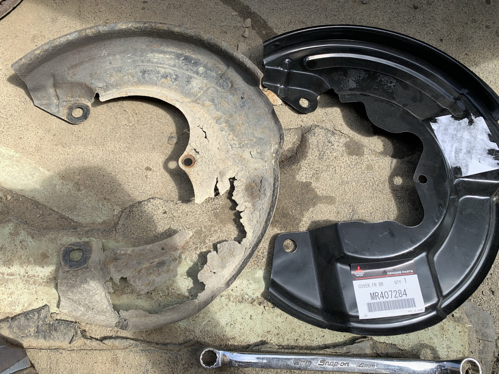 Ещё весной заметил сгнившую защиту тормозного диска. Заказал пару. Замена не сложная, делал сам.
