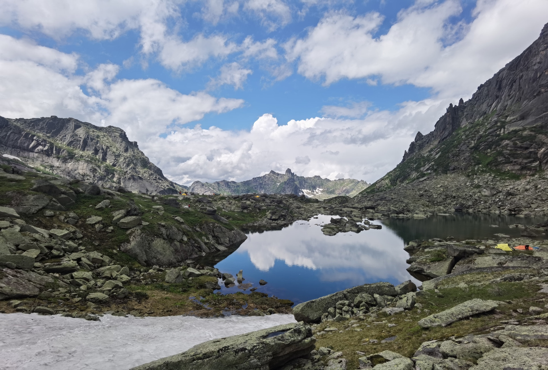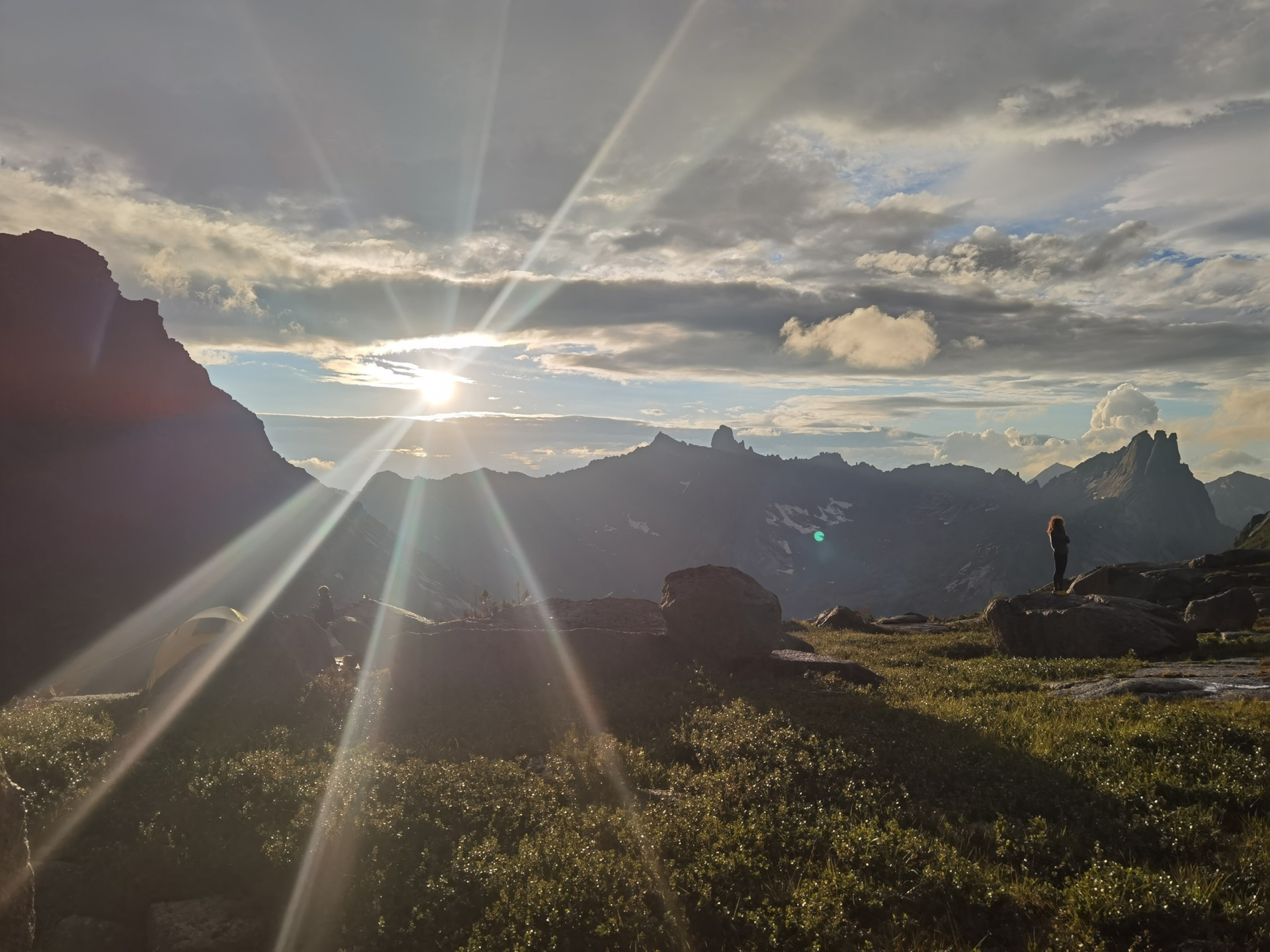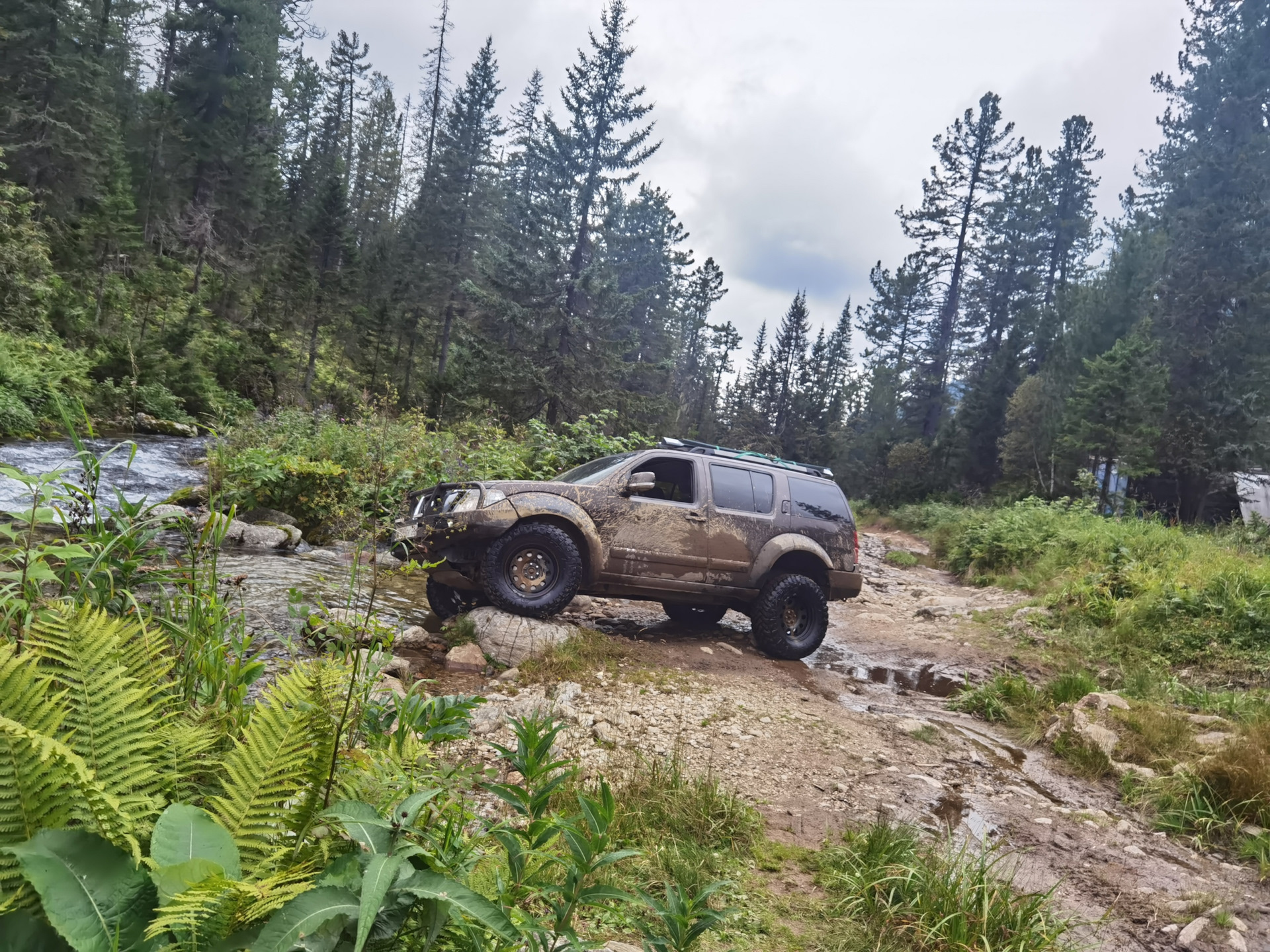 Немного поизголявшись сдергиваем ее с места и приматываем так чтобы не попала ни в вентилятор (он продолжит вращаться) ни в приводной ремень. Стартуем, и вот черт первые метров пятьсот "Вертолет" нас не покидал, а затем о боги улетел, и тишина и машина ожила, я конечно же следил за температурой и не было ни намека на перегрев. Проскочив горный участок в Красноярском крае выехали на равнины Хакассии днем жарило под 30, но перегрева не наблюдалось, все хорошо. Так тихим сапом добрались до предгорий Саян и полезли в перевал перед Ергаками, шел дождь и температура была не выше +15. Подъем здесь очень затяжной и при том довольно крут. Примерно в середине подъема температура полезла вверх заметив это некоторое время мог ее контролировать оборотами, но через какое то время полезла уже к красной зоне. Остановились, на Х/Х температура не падала, заглушил. В общем не мудрствуя лукаво воткнули фишку на место, немного остыли и завелись. Температура быстро пришла в норму при этом "вертолетов" не было! Дохали мы до места и отправились в горы, хотя это совсем другая история!