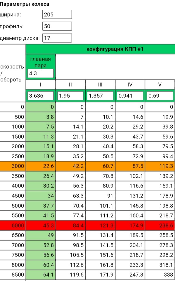 ПОМЕНЯЛИ 5ую передачу на более длинный, теперь обороты двигателя стали немного ниже. (Скрин с калькулятора)С завода бы так, а нет надо самому доработать)