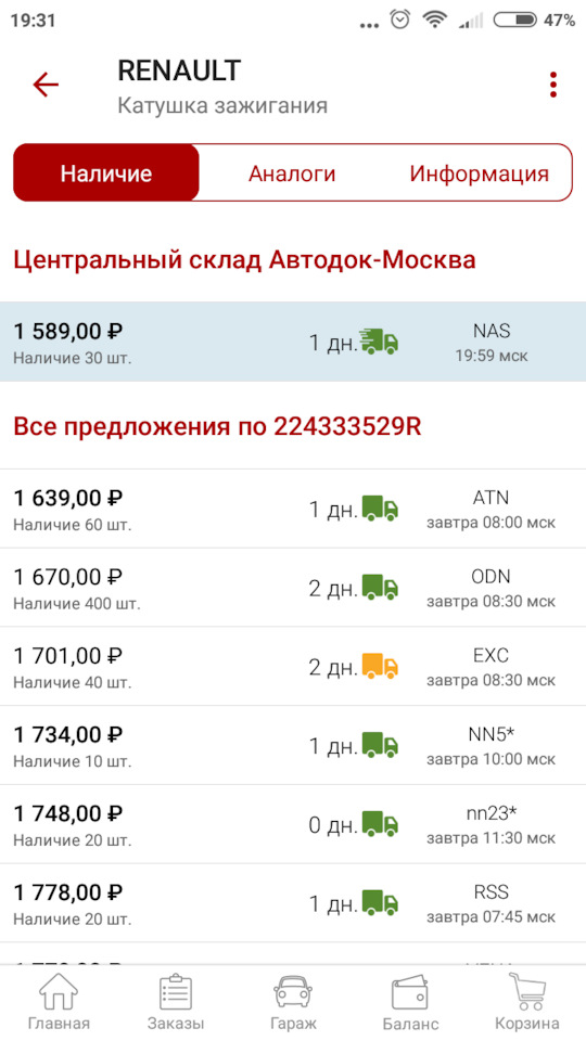 В июле в автодоке брал оригинал за 1500 с копейками, в коробке Рено, с надписями рено-беру на катушке