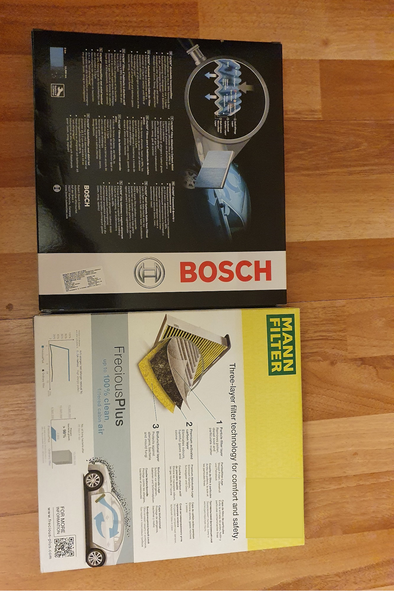 На ТО3 не стал менять воздушный так как он по регламенту на 2года или 30т.км. Достал, посмотрел, вернул обратно. Только мысль, что нужно было поменять раз залез, немного напрягала. Зимой если приспичит поменять фильтры на улице плохая идея. Короче, купил на пробу сразу 2 фильтра Бош и Манн заодно и салонные.