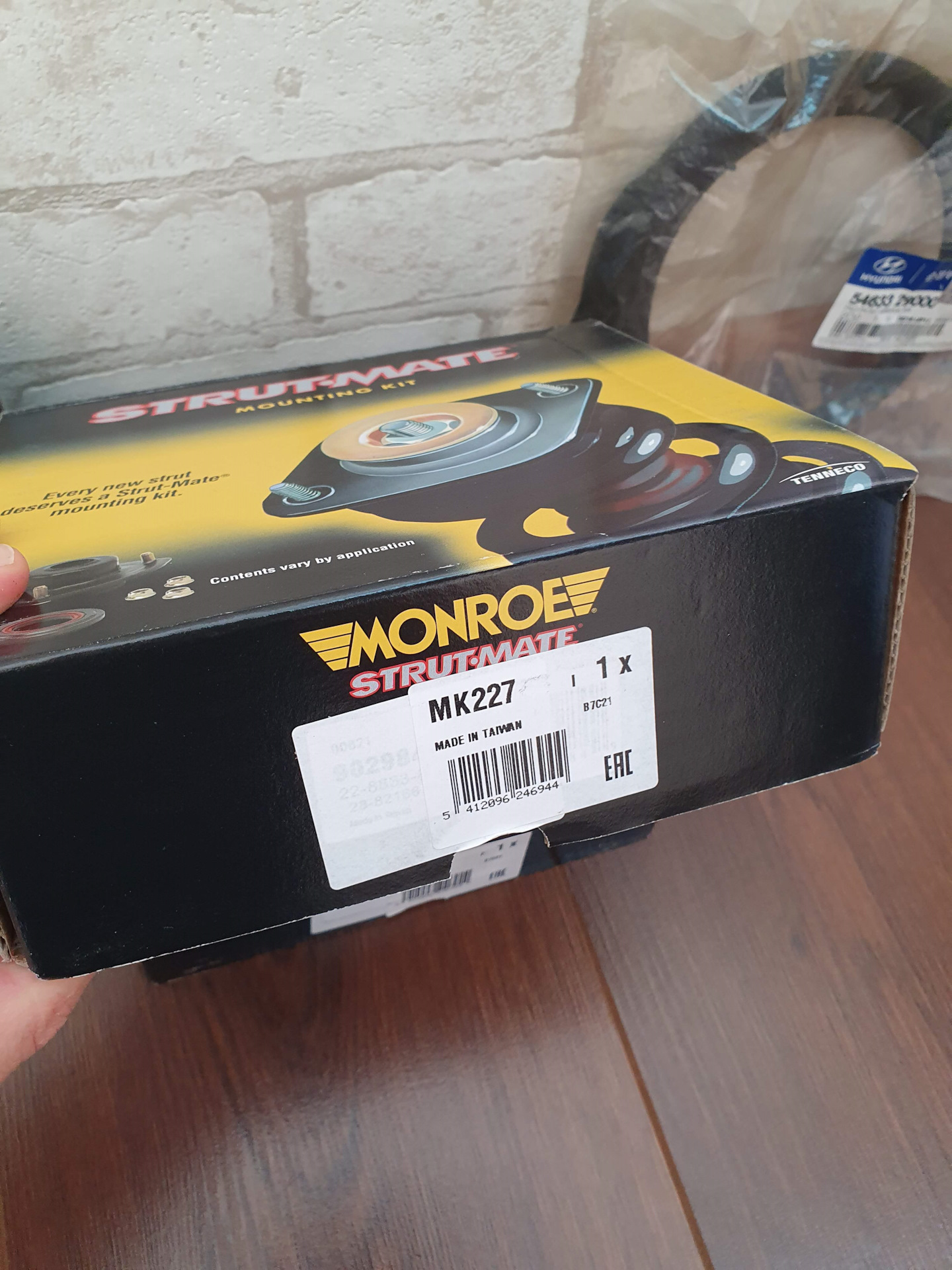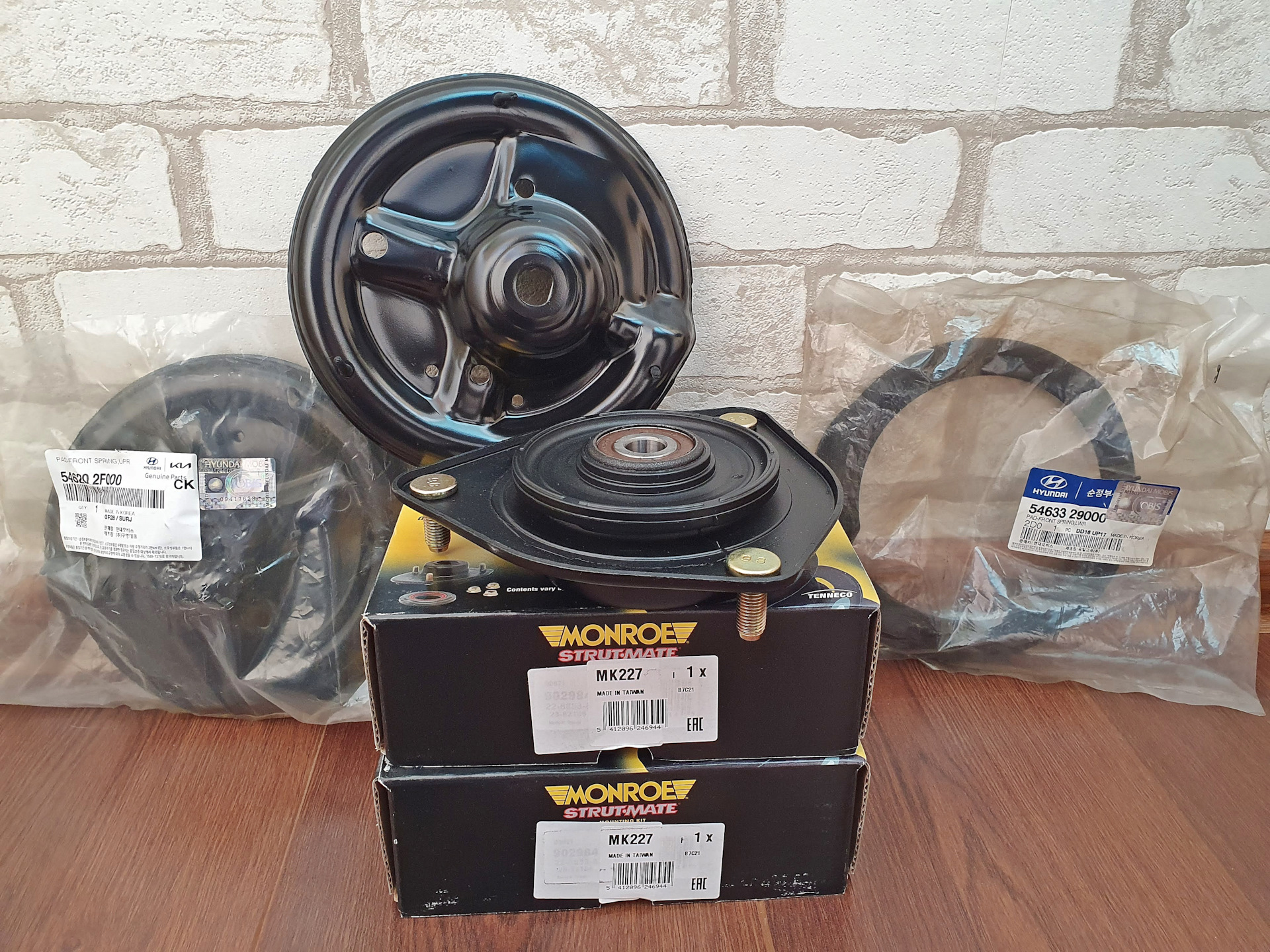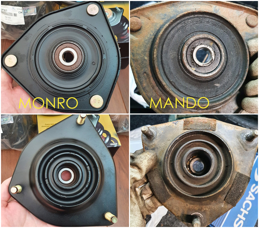 Поставил я MONRO MK227. Они по цене оригинала. Сделаны добротно, подшипник какой-то "мейд ин джапан"). Так же заменил верхние чашки амортизаторов 546202F000, они были уже совсем в плачевном состоянии. Порадовало, что идут вместе с резинкой. Например нижние резинки на амортизатор нужно покупать отдельно. У меня правая была порванная. Заменил ее 54633 29000.
