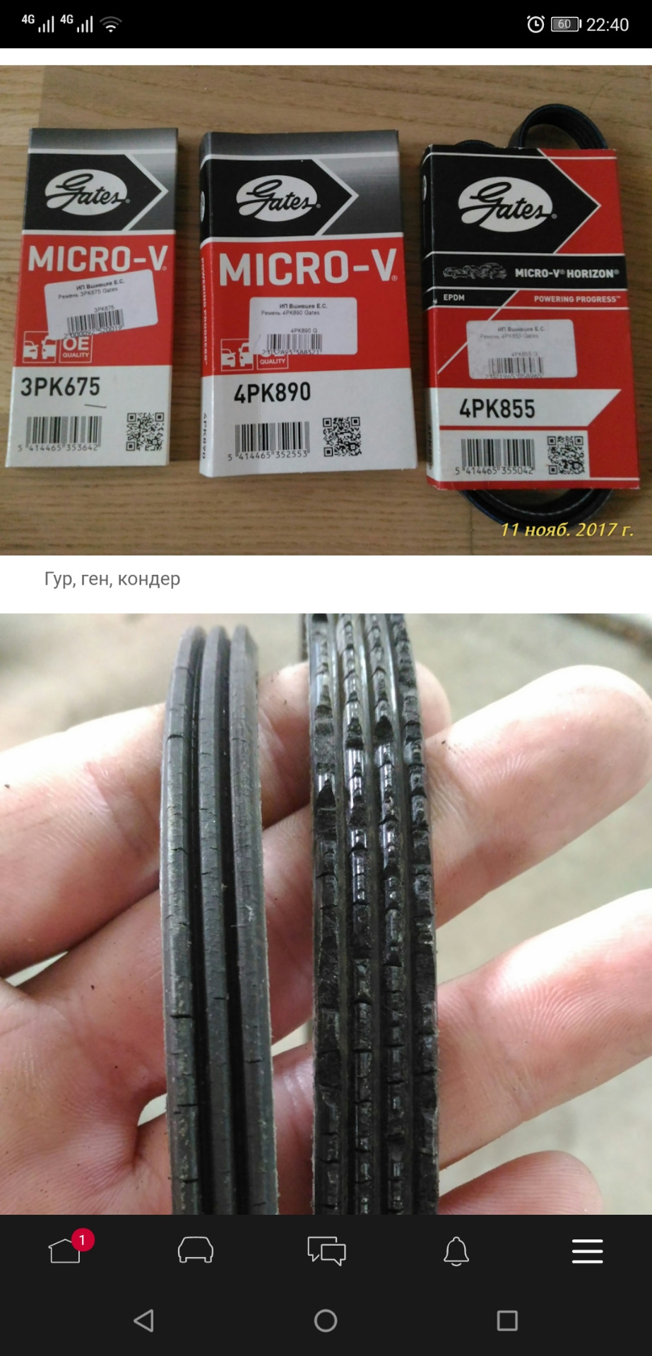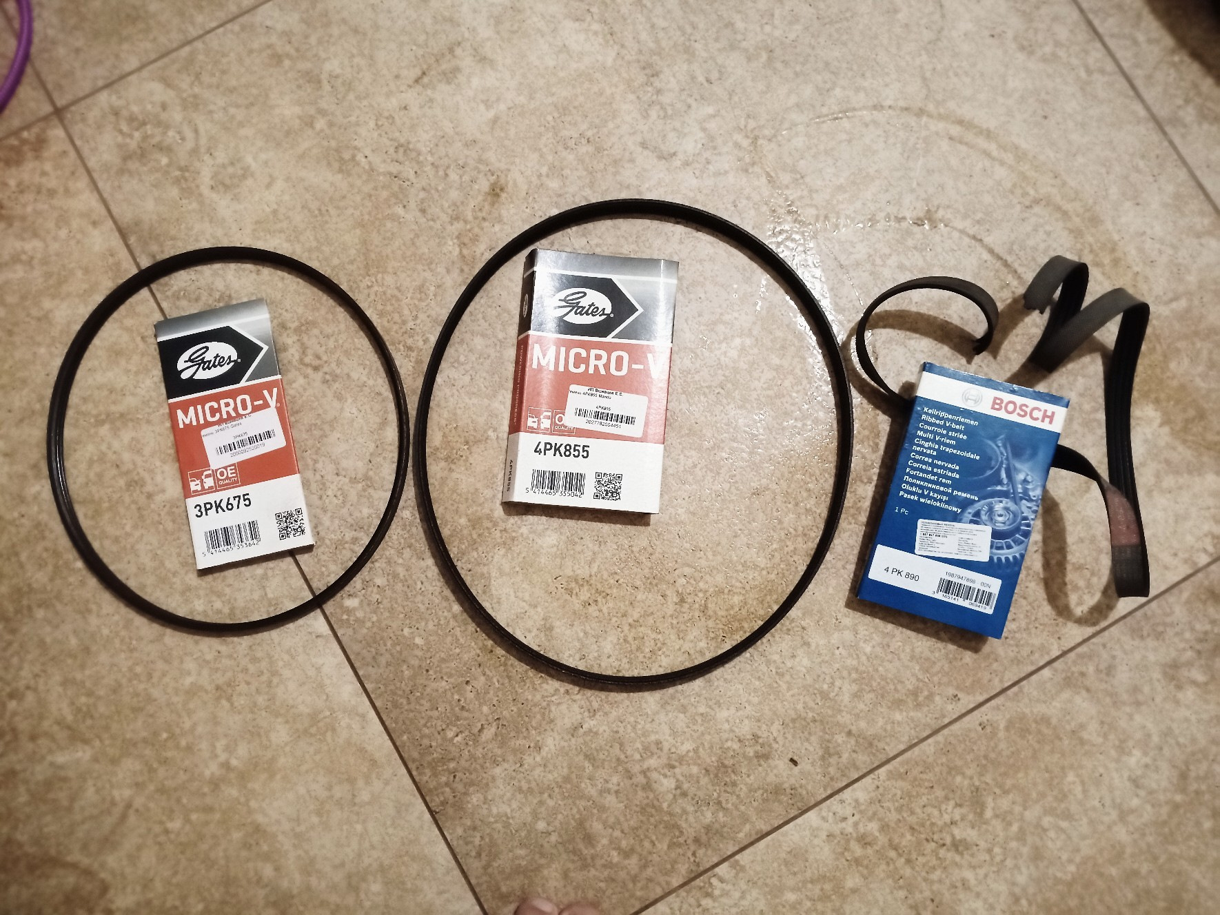 Одномоментная замена трёх ремней. На место гены поставил бош, так как он визуально толще гейтца.