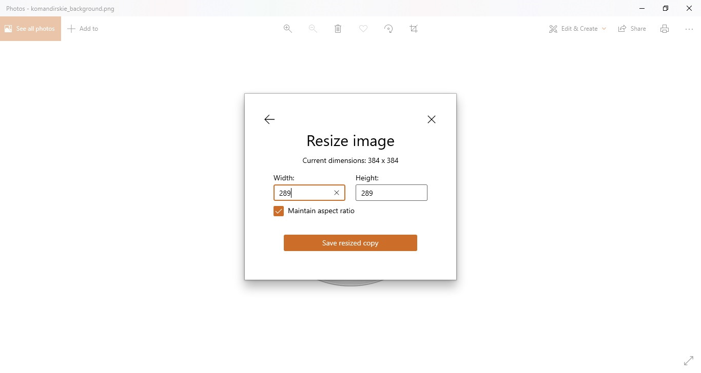 Так как размеры png файлов командирских часов в пикселях отличались в большую сторону, я открывал их во встроенном в Windows 10 редакторе "Photos", нажимал правую кнопку мыши, затем Resize и указывал нужный размер (согласно составленной таблицы), сразу сохраняя изменения в файл под нужным именем в папку Unsorted: