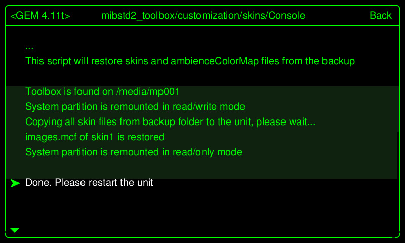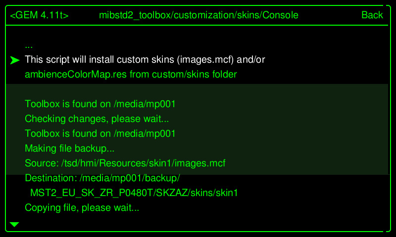 Берем эту USB флешку и отправляемся в автомобиль устанавливать скин с новыми часами через "Toolbox->customization->skins->Copy images.mcf and ambienceColorMaps from /custom/skins":