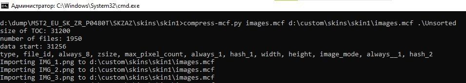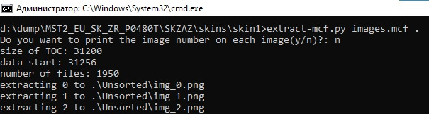 Далее записываем в эту папку скрипт extract-mcf.py и compress-mcf.py (спасибо daChillout), ставим Python 3 если он еще у вас не стоит, запускаем cmd.exe из папки со скином и извлекаем изображения скина введя команду extract-mcf.py images.mcf . и на вопрос отвечаем n: