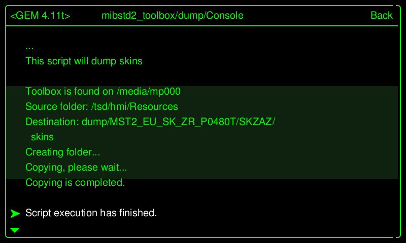 Я использовал USB флешку. Вынимаем ее из юнита и подключаем к компьютеру/ноутбуку и видим, что в папке /dump/MST2_EU_SK_ZR_P0480T/SKZAZ/skins/, появились папки skin0, skin1, skin2, skin3.
