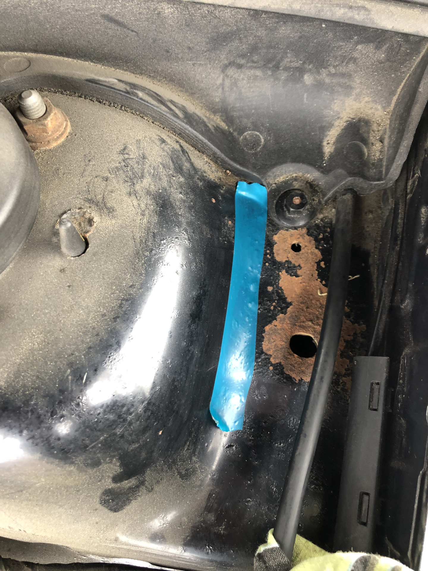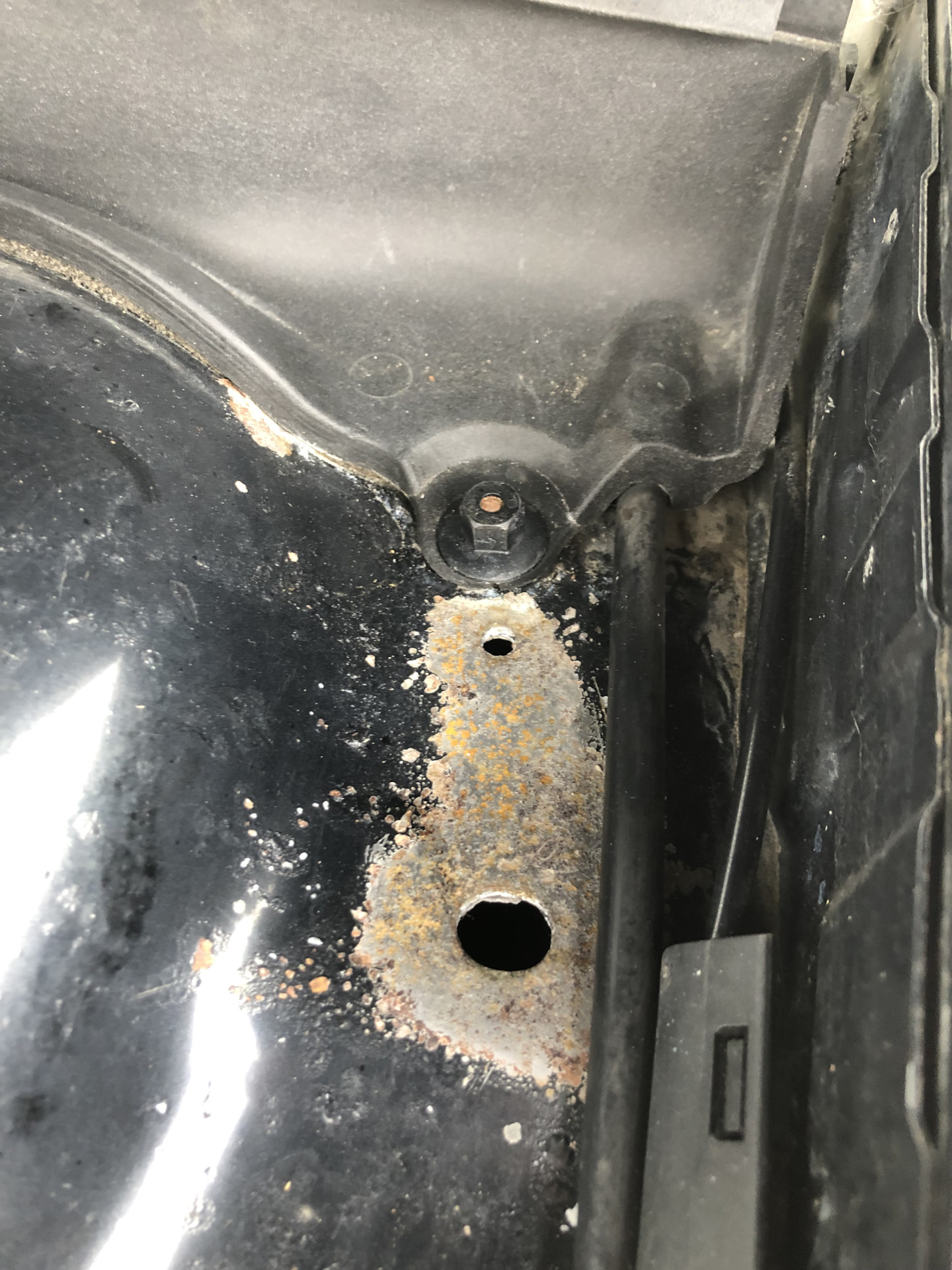 При снятии увидел коррозию на стойке, скорее всего протерлось, так как молдинг гулял,