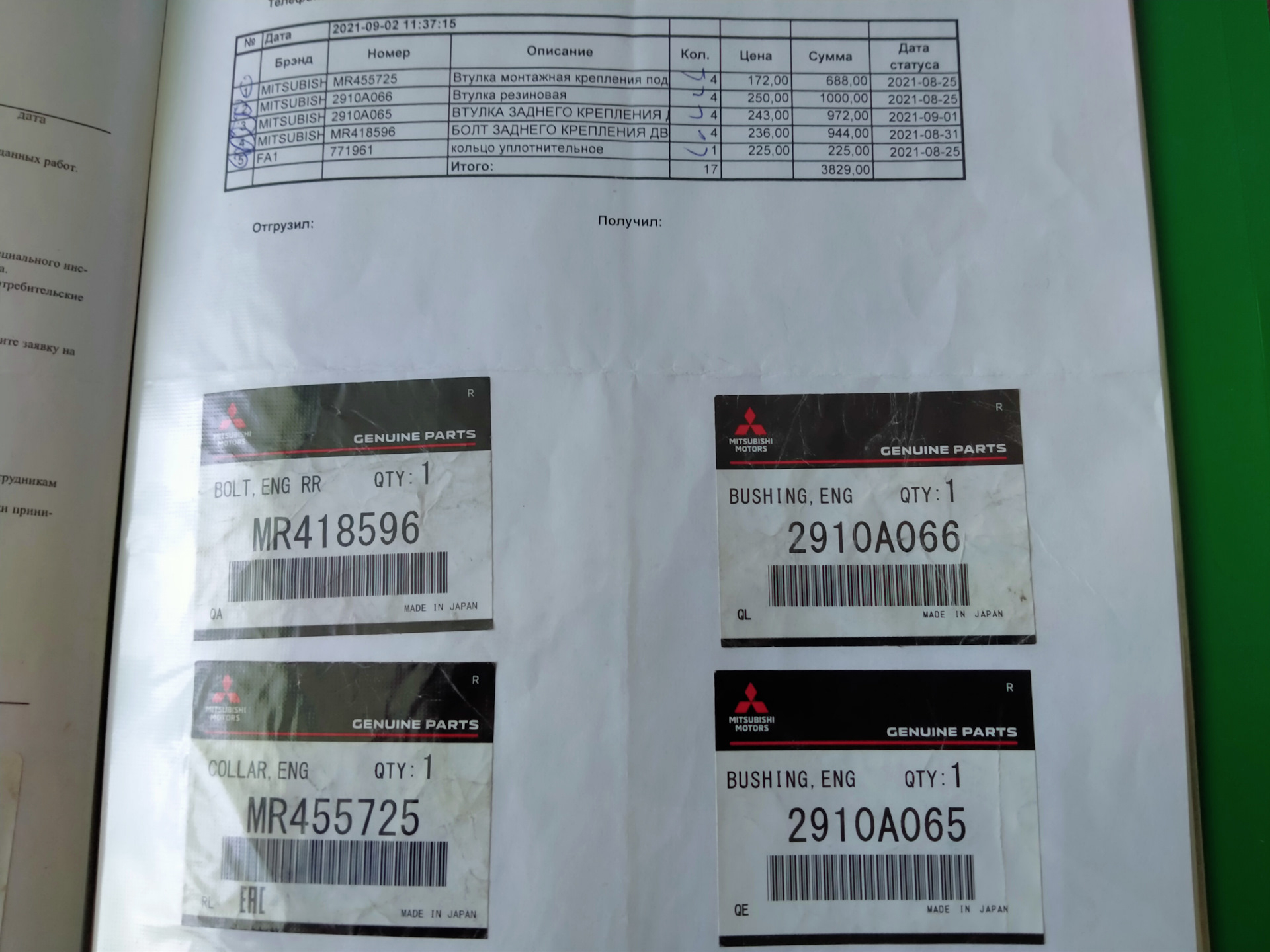MB121145 — 4шт и — MB121185 4 шт. в емексе