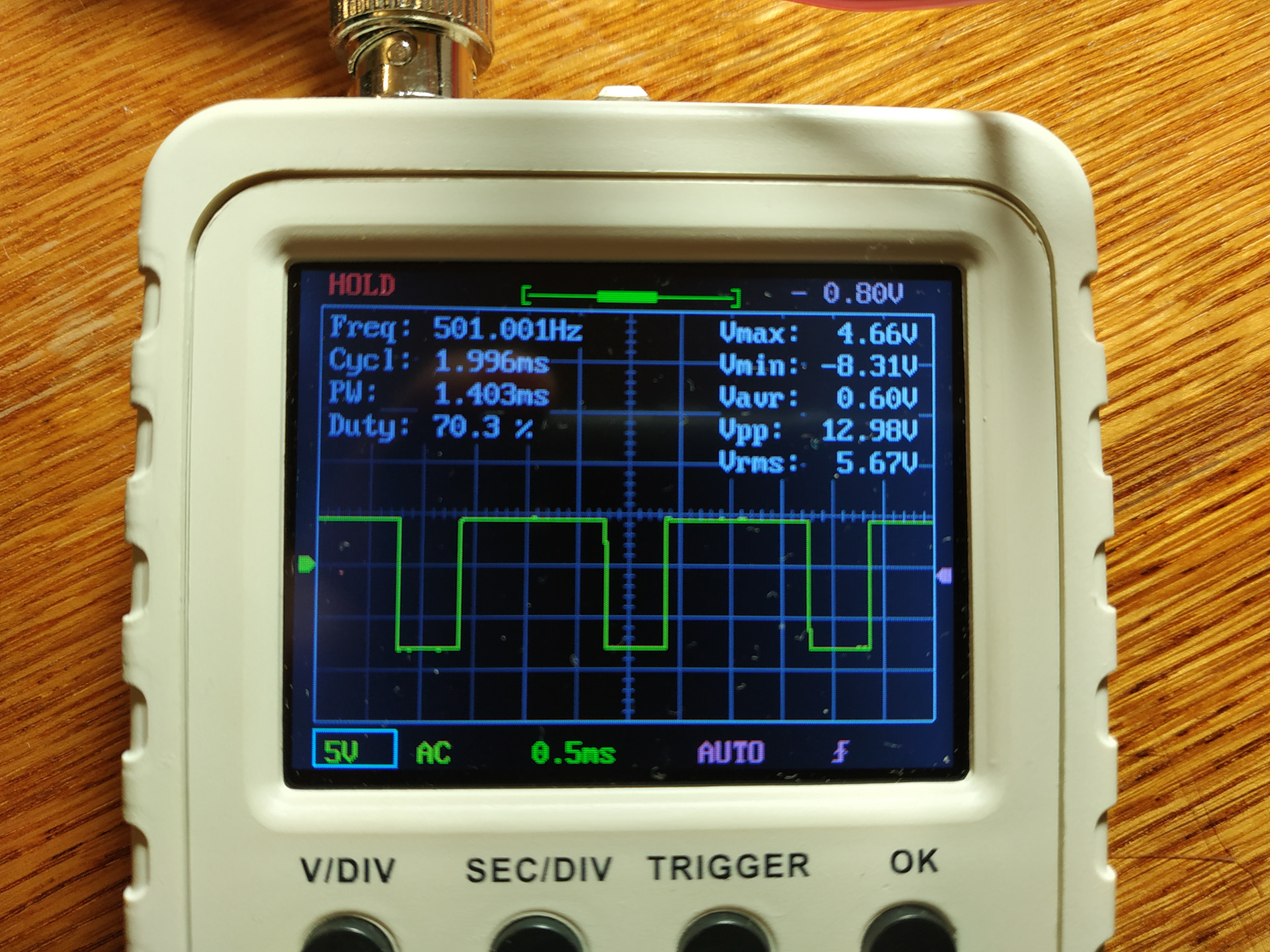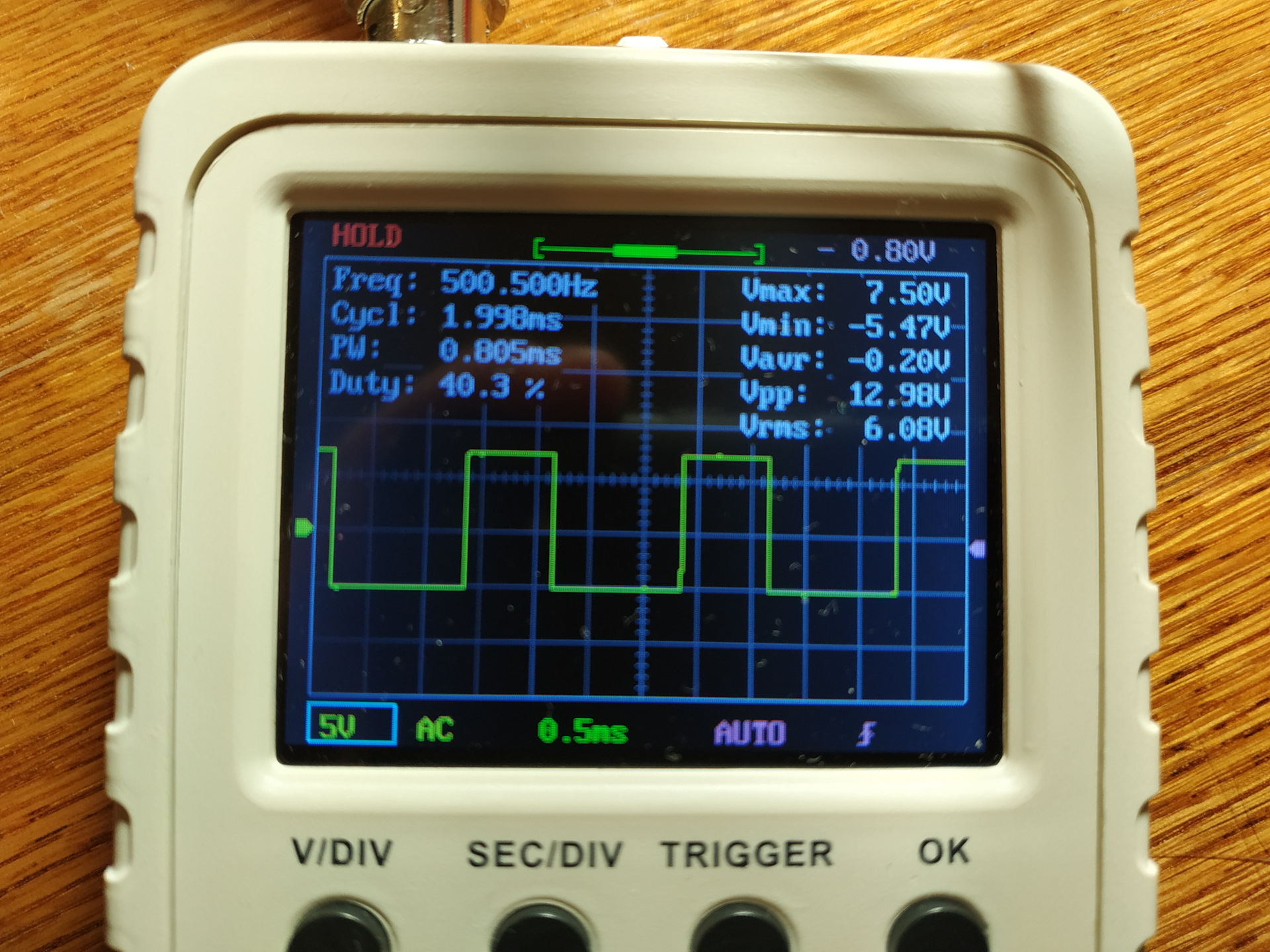 И чуть не забыл, осциллограммы сигнала на выходе, как же без них. Здесь 40%, третий, самый слабый режим