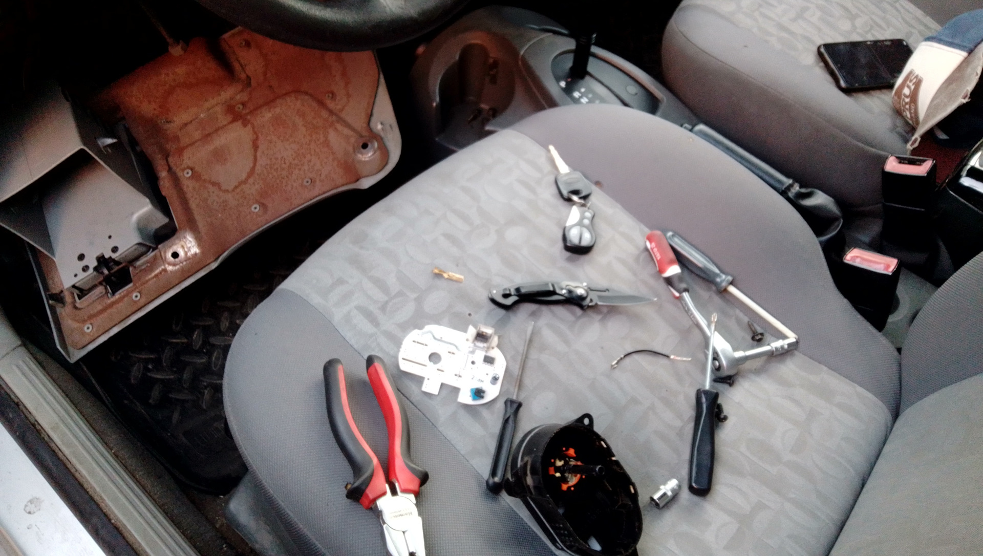 Вынимаем переключатель света и замыкаем 2 контакта!