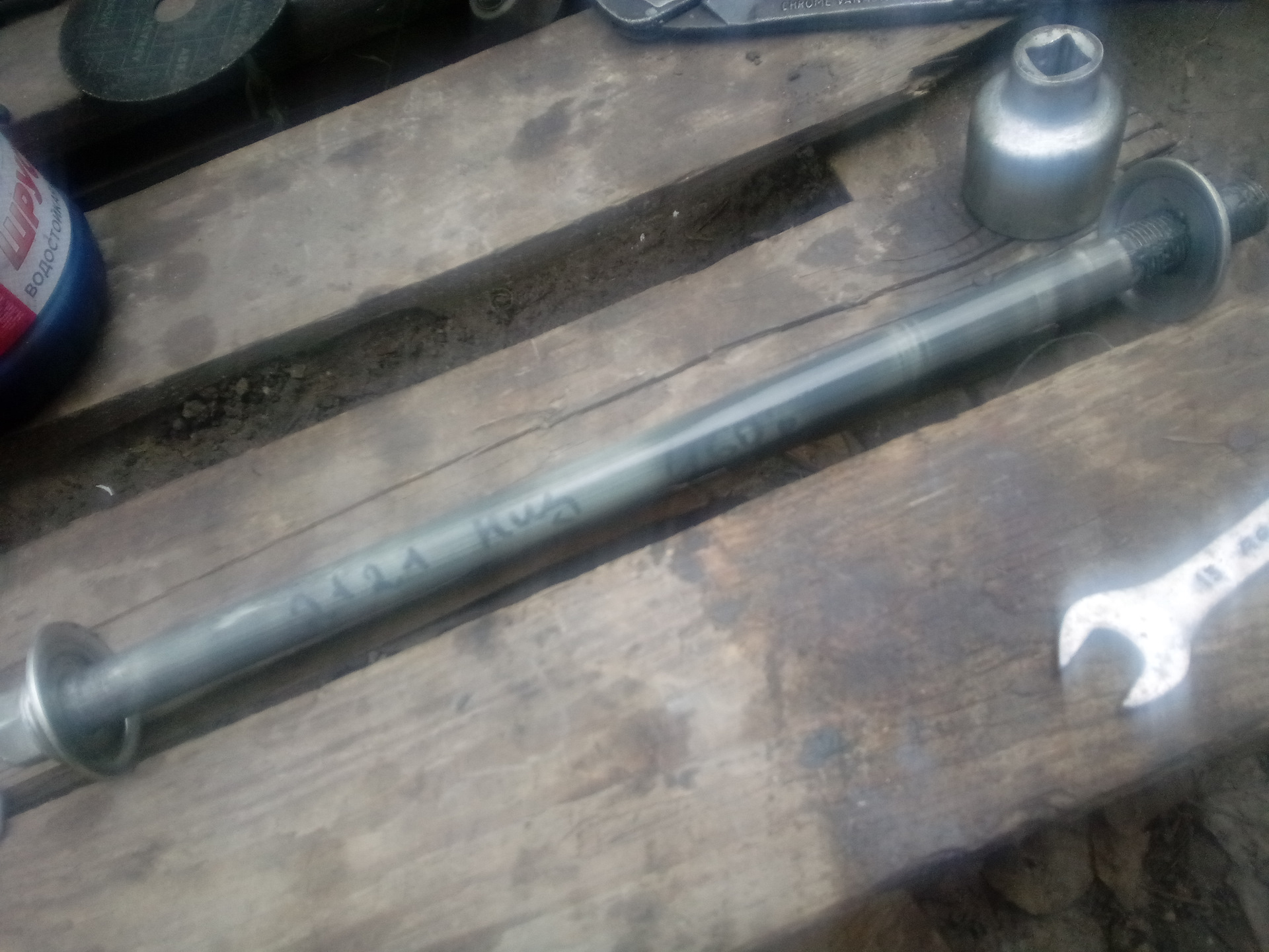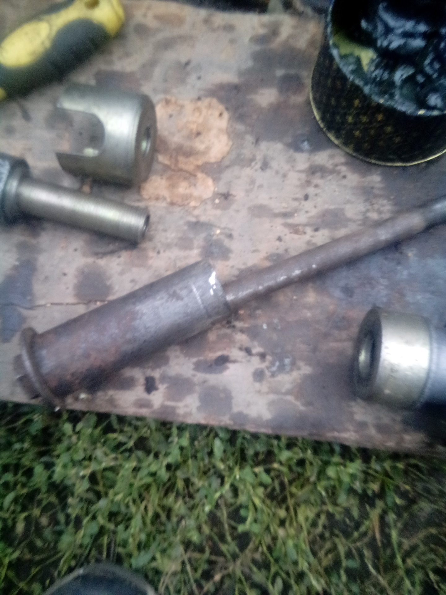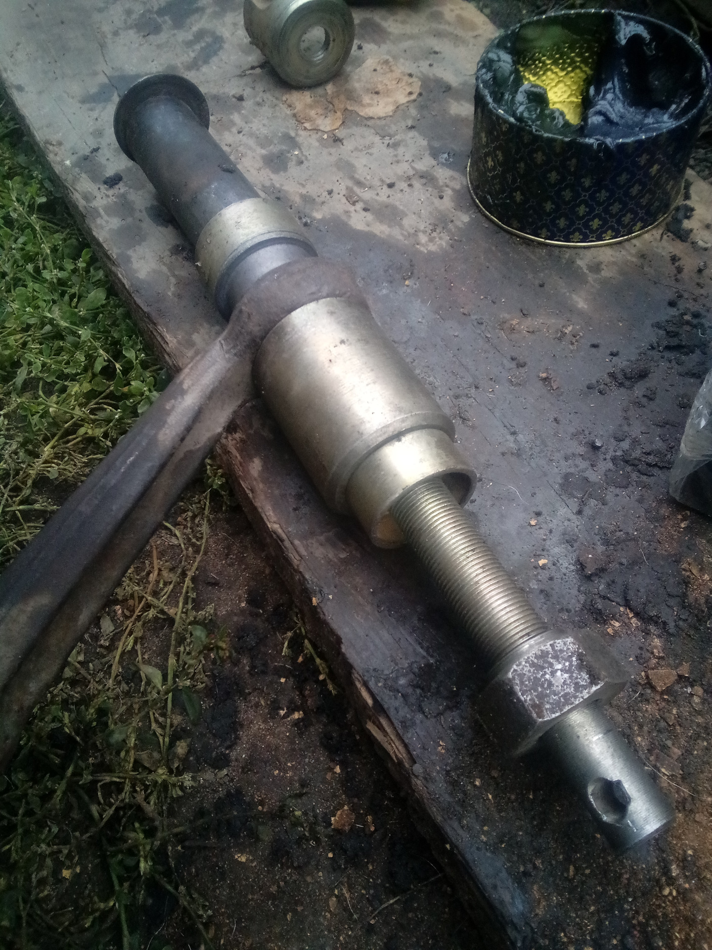 …в общем пока Надя стояла на пеньках ( подробности в предыдущих выпусках), чтоб два раза не лазить решил поменять саленты с осями, оси прикипели к передним салнетам. И по ходу проставки все повыскакивали, рычаг во втулке болтался во всех направлениях. Старую ось пришлось пилить у переднего салента. Рычаги конечно пришлось греть.