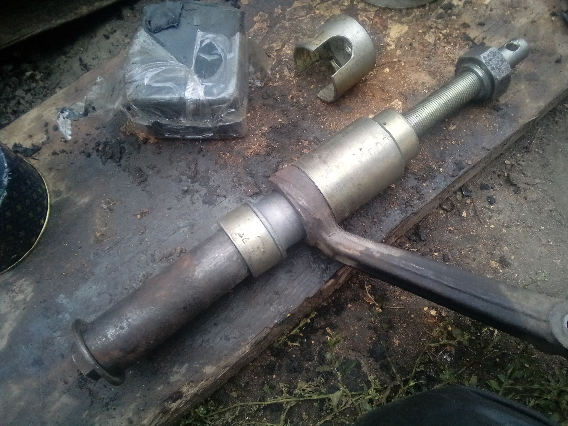 Запрессовывал саленты с помощью съёмника для классики, как говорится "чем было тем и делал". Единственное пришлось борт искать подлиньше, так как от съёмника был короткий. Взял верхний болт крепления короткой реактивной тяги . В загашнекие был ещё от четверки.