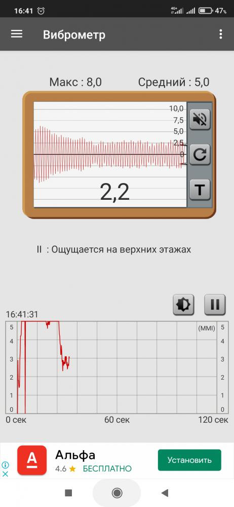 Сначала уровень до 6 баллов, потом при наборе оборотов вибрация падает до 2.2.