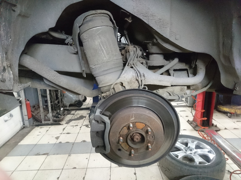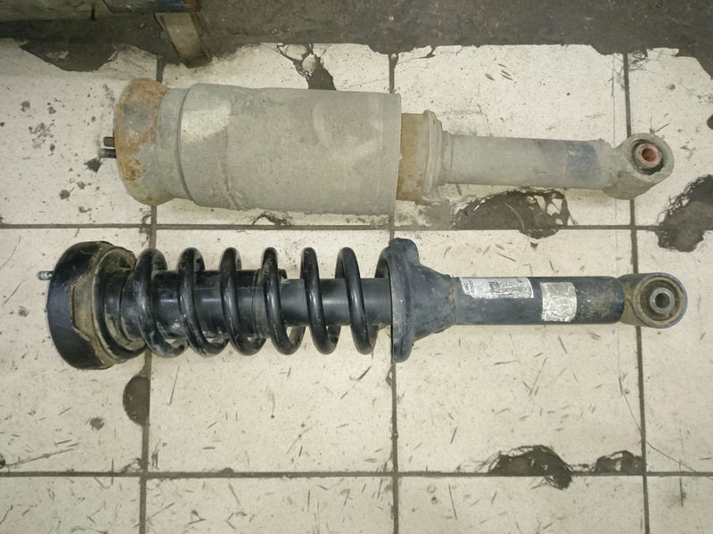 Что вначале менять стойки или вначале выписать пневмоподвеску из автомобиля? Немного подумал и решил поменять вначале стойки. Фото выкладываю.