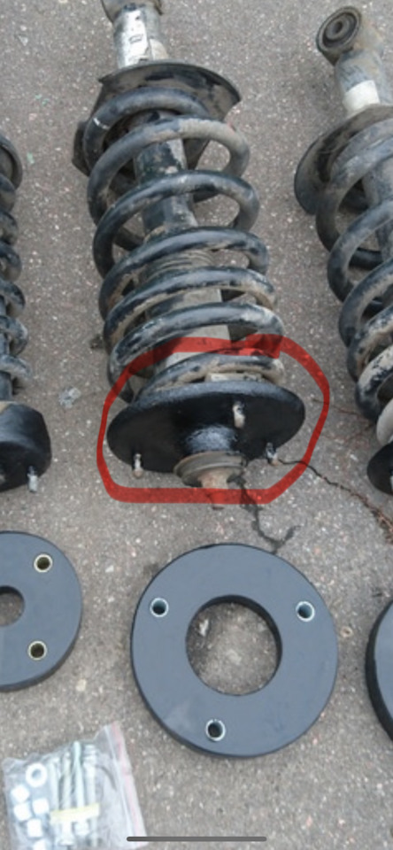 Привет! Я покупал стойки готовые как на фото. Дополнительно купил проставки для лифта. Колеса у меня 20" и я сомневался, вдруг после замены пневмоподвески на пружины колеса не впишутся в арки.