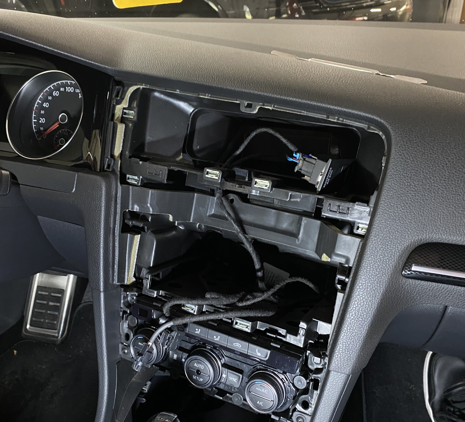 С пассажирской стороны снимаете пластиковую защиту в районе левой ноги, держится на одном саморезе и 2х клипсах.