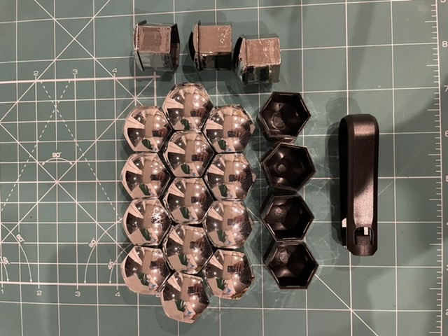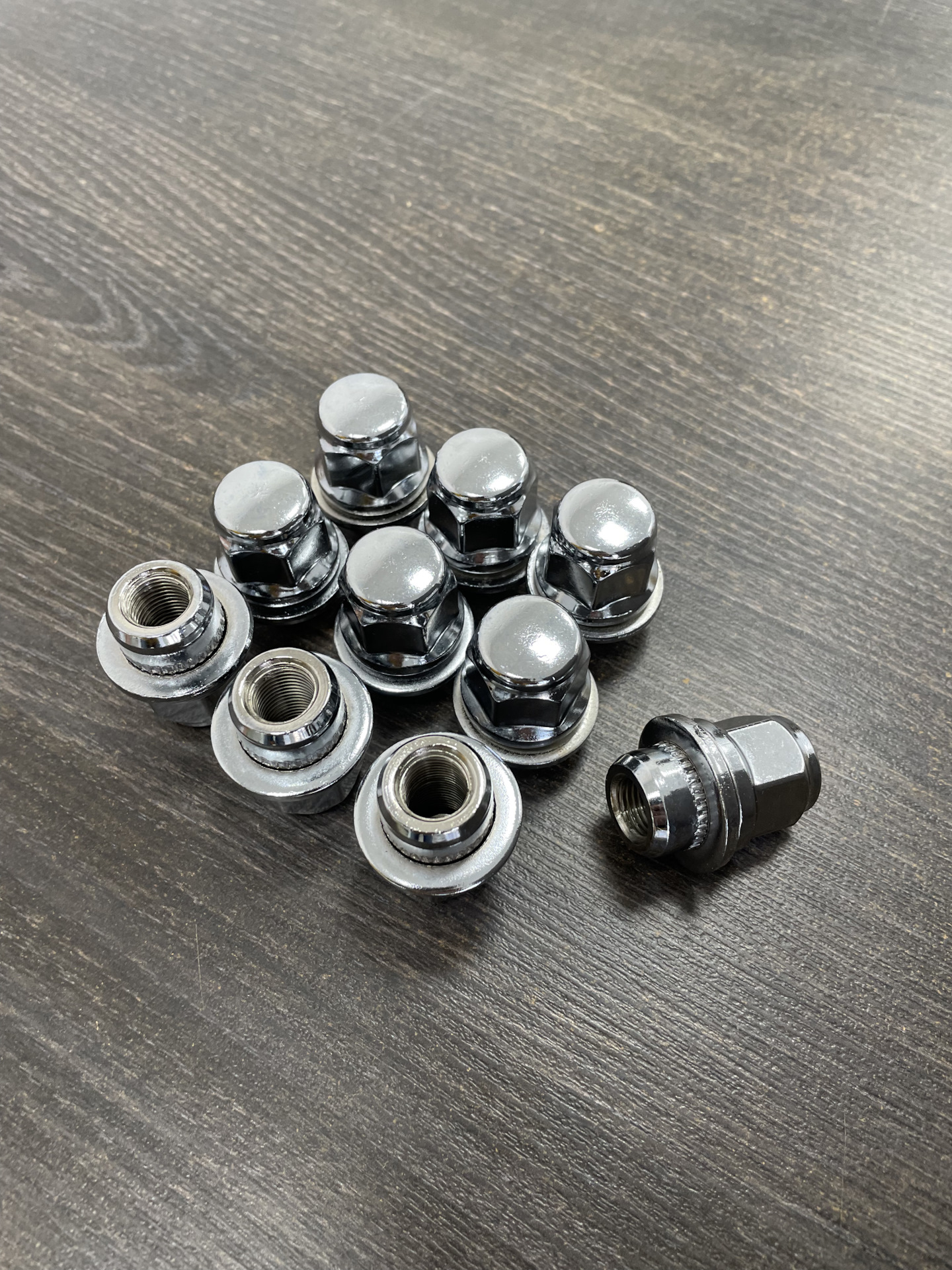 От прошлого владельца достался набор разных гаек неизвестного происхождения и в ужасном состоянии — в общем сборная солянка не первой свежести! Хорошо хоть что все с пресс-шайбой. Так как в планах окраска 20" дисков решено было перед этим привести в порядок гайки. Почитав другие публикации на Драйве и тд оказалось что существует два вида гаек (не оригинал) на наши авто с носиком 18,5 и 20 мм (оригинал как раз 20 мм, зачем было делать 18,5 вообще не понятно). Так вот найти гайки с носиком 20 мм по адекватной цене в наличии не удалось кроме как фирмы Вектор…