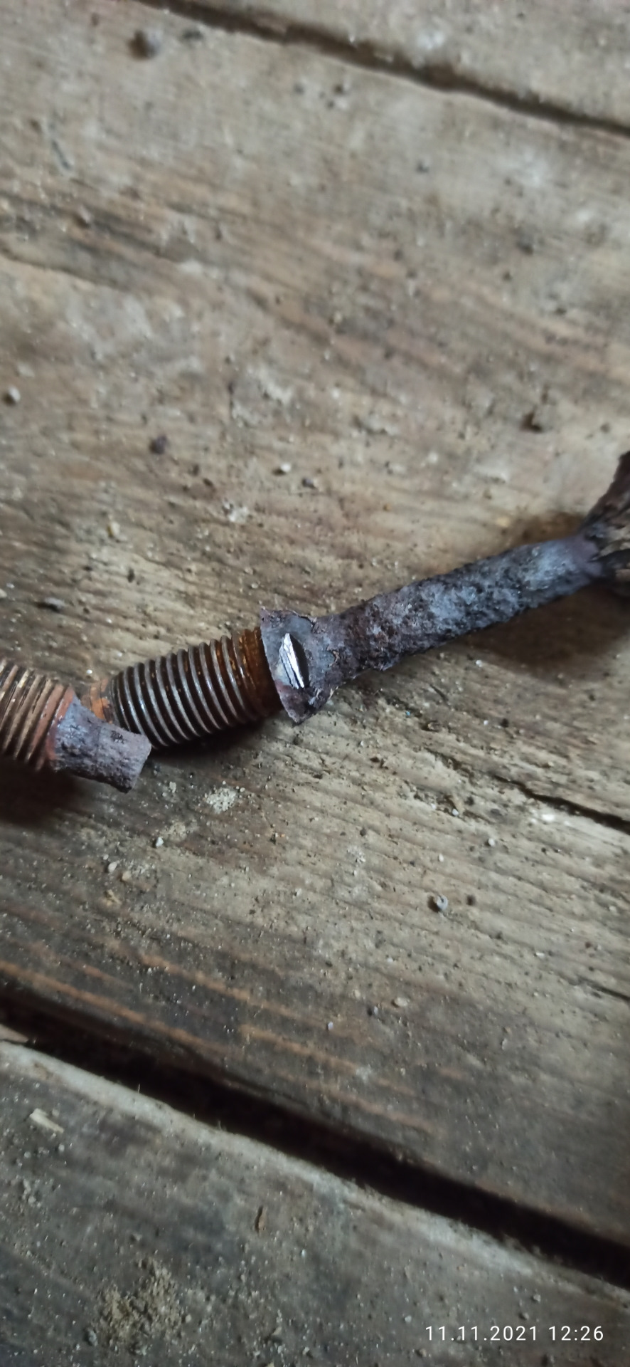 Второй который вкручивается на глухую выкручиваться отказался, начал гнутся. Погрел его горелкой, попробывал, снова нет. Тогда на помощь приходит зубило и молоток. Пару ударов зубилом в упор болта и он открутился как по маслу