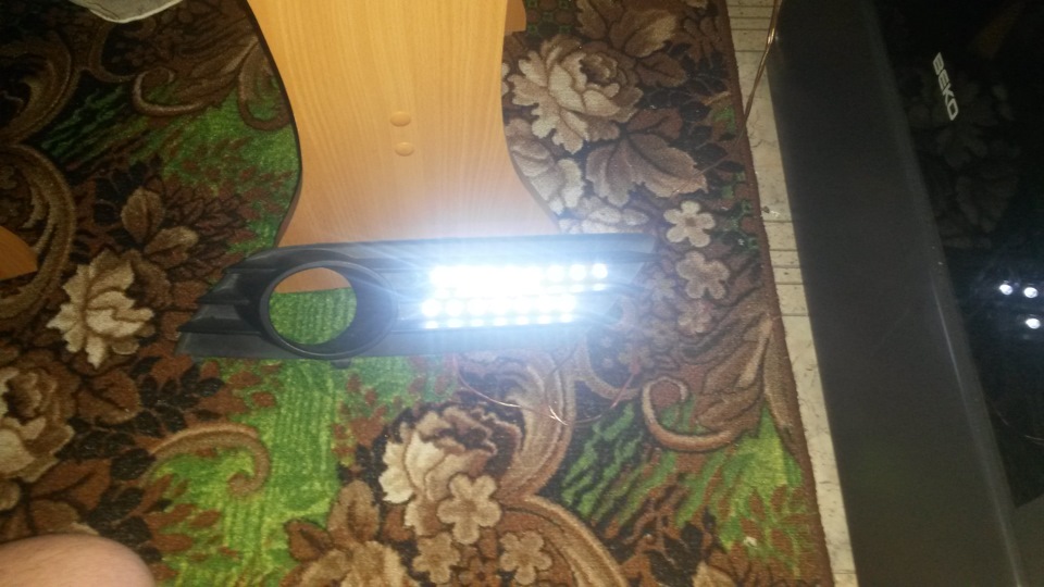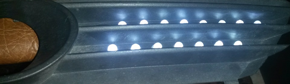 Решил сделать ДХО. Скандинавский свет активирован по опусканию ручника но как то не то пальто. Так что были куплены диоды BL-L813UWC 12VDC диаметром 8мм ультра белые 30 штук. Диоды сразу на 12 вольт так что соединять все паралельно. Снял накладки с туманок и дома начал ваять. Впринципе ничего сложного. Порядка 400 рублей и правильно растущие руки. Как установлю добавлю фото уже установленных!